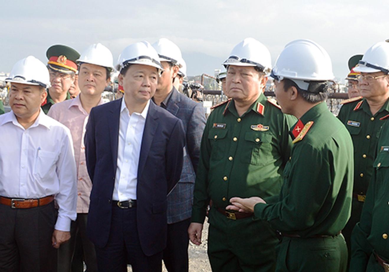 Báo cáo với hai Bộ trưởng, thiếu tướng Bùi Anh Chung, Phó Tư lệnh Quân chủng Phòng không Không quân (chủ đầu tư dự án) cho biết sân bay Đà Nẵng có khoảng 148.000 m3 đất, trầm tích nhiễm dioxin. Từ tháng 6/2011, dự án xử lý môi trường nhiễm dioxin tại sân bay Đà Nẵng do Chính phủ Mỹ tài trợ đã được khởi công. Đến nay, 45.000 m3 đất nhiễm dioxin đã được làm sạch.