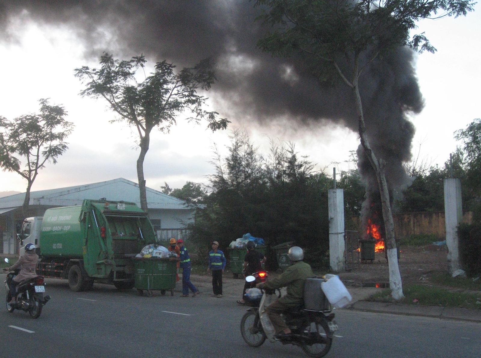 Do ngọn lửa bốc cao tưởng xảy ra cháy lớn, sân bay Quốc tế Đà Nẵng phải điều 2 xe chữa cháy tiếp cận hiện trường, song khu vực đốt rác nằm ngoài tường rào sân bay nên quay về.