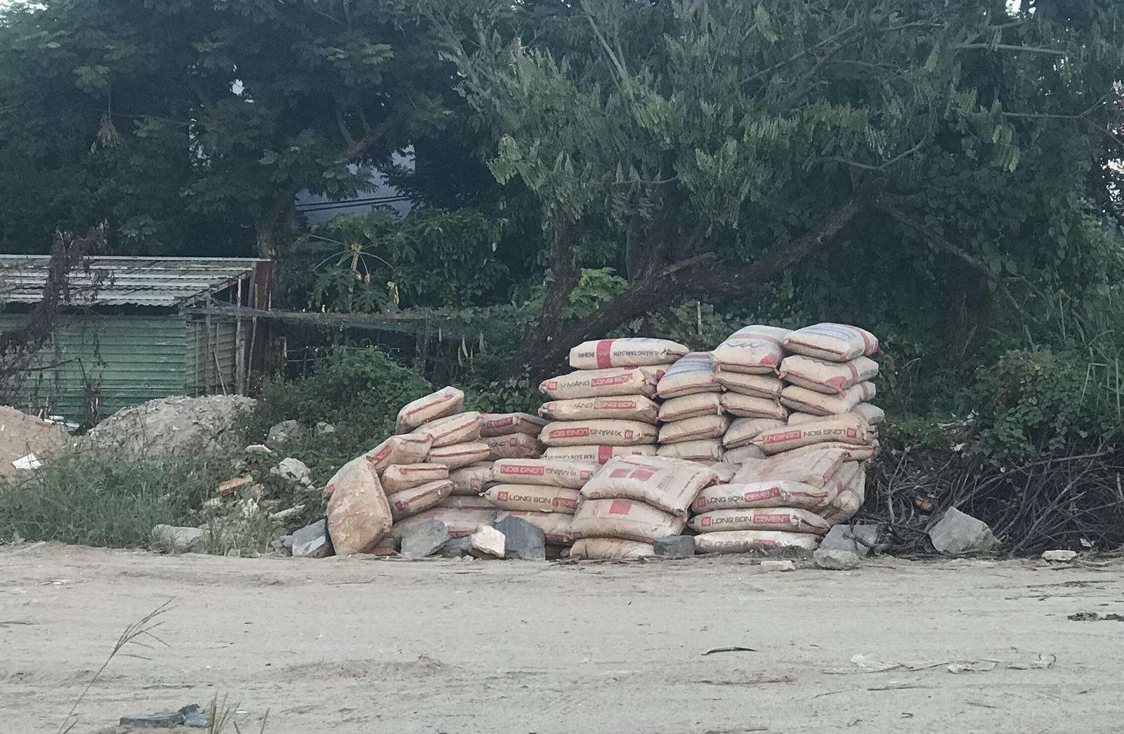 Nhiều bao xi măng mất tác dụng còn để lại hiện trường. Ảnh: N.P