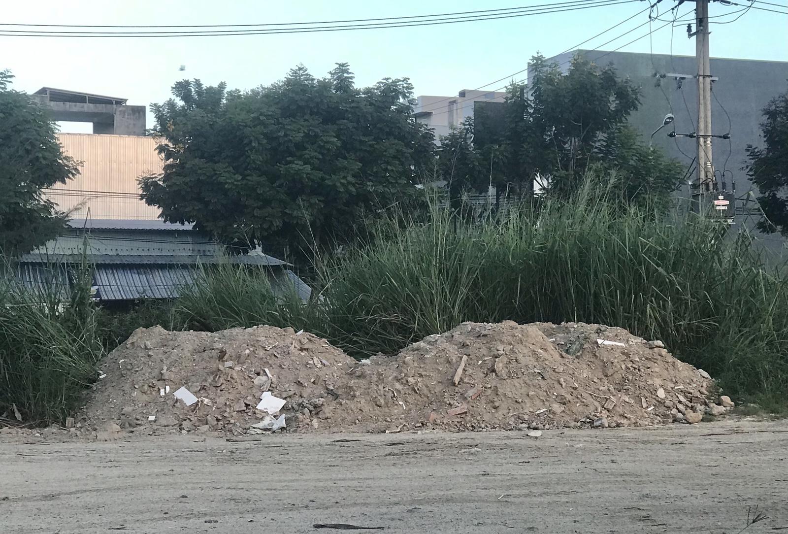 Xà bần, rác rưởi còn đổ ven bãi tập kết xi măng. Ảnh: N.P