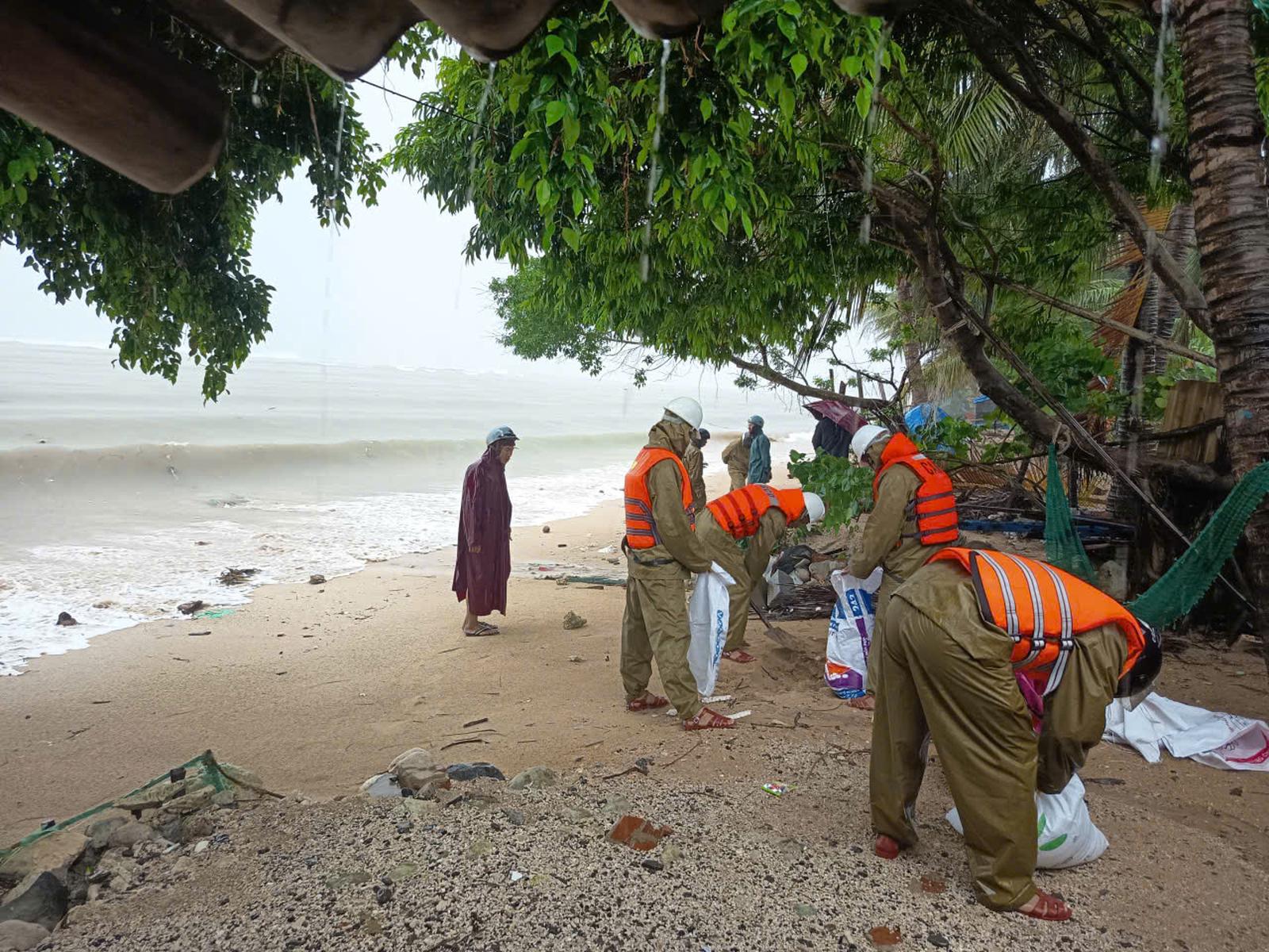 Phó Chủ tịch UBND tỉnh Đắk Lắk Nguyễn Thiên Văn đang kiểm tra công tác di dời dân ra khỏi vùng nguy hiểm tại cửa biển Tiên Châu, xã An Ninh Đông. Ảnh: PV