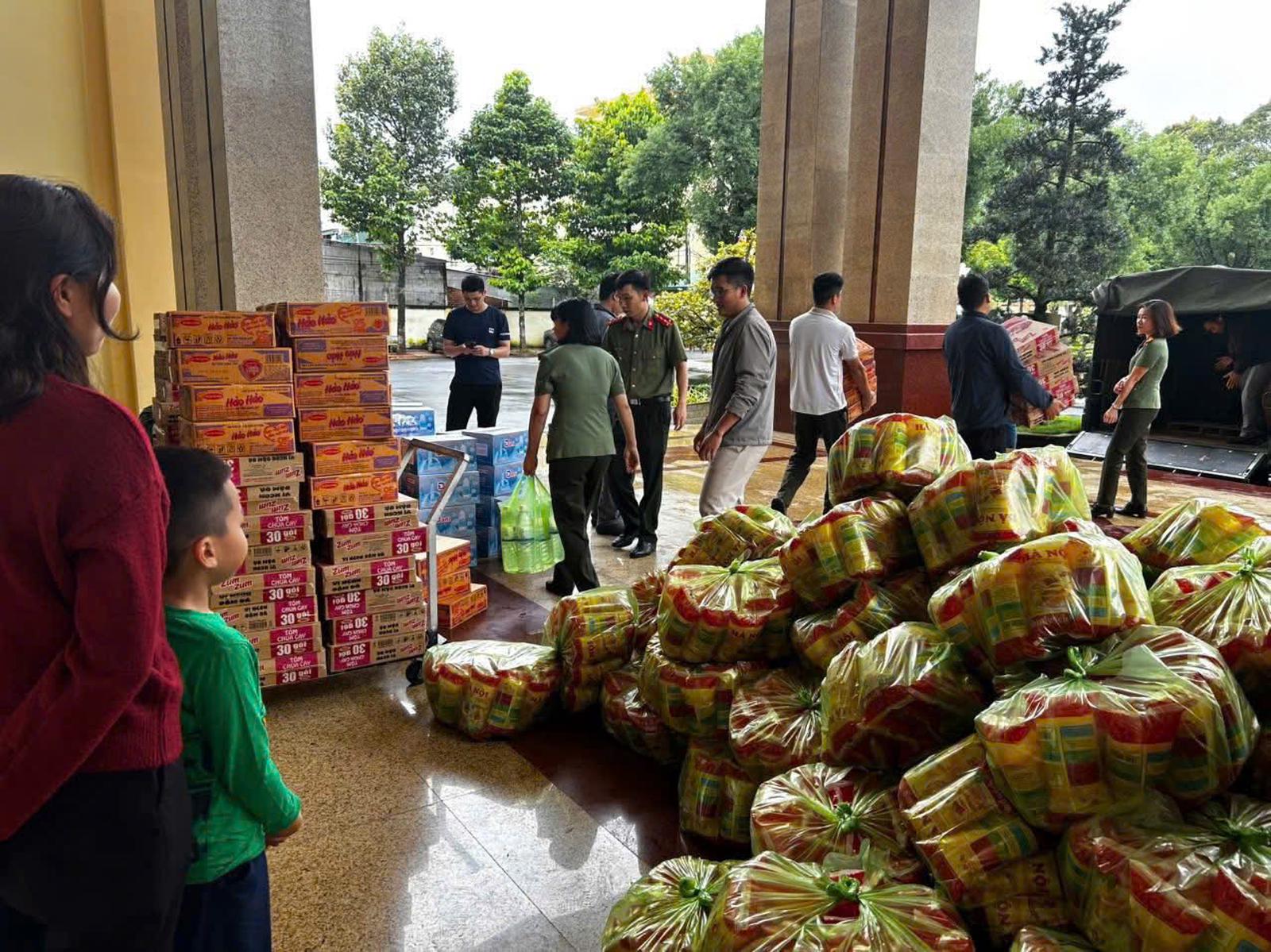 Công an tỉnh Đắk Lắk chung tay cùng Nhân dân khắc phục hậu quả thiên tai, chuyển giao hàng hóa thiết yếu đến bà con vùng lũ. Ảnh: CA