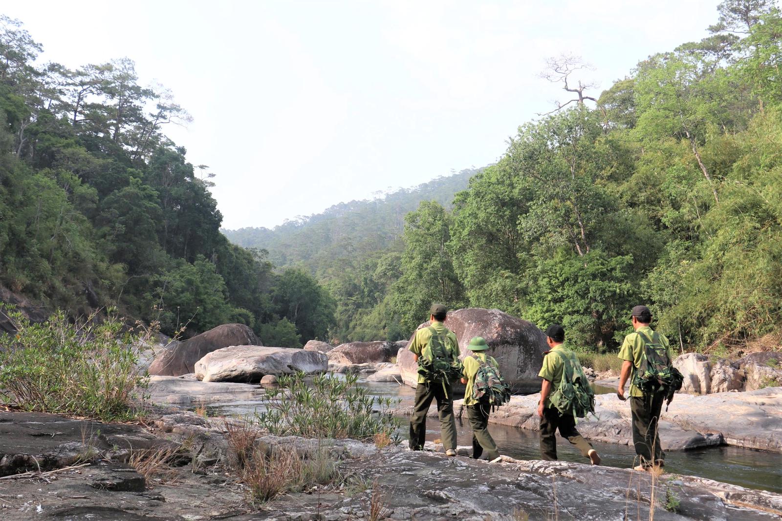 Lực lượng kiểm lâm Vườn Quốc gia Chư Yang Sin (huyện Krông Bông, Đắk Lắk) phối hợp với người dân địa phương trong công tác bảo vệ và phát triển rừng. Ảnh: TL