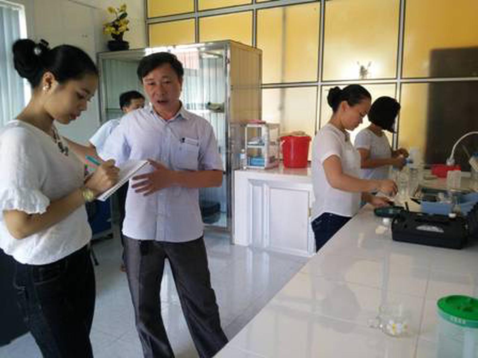 Kiểm tra mẫu nước tại phòng hóa nghiệm. Ảnh: Tăng Thành