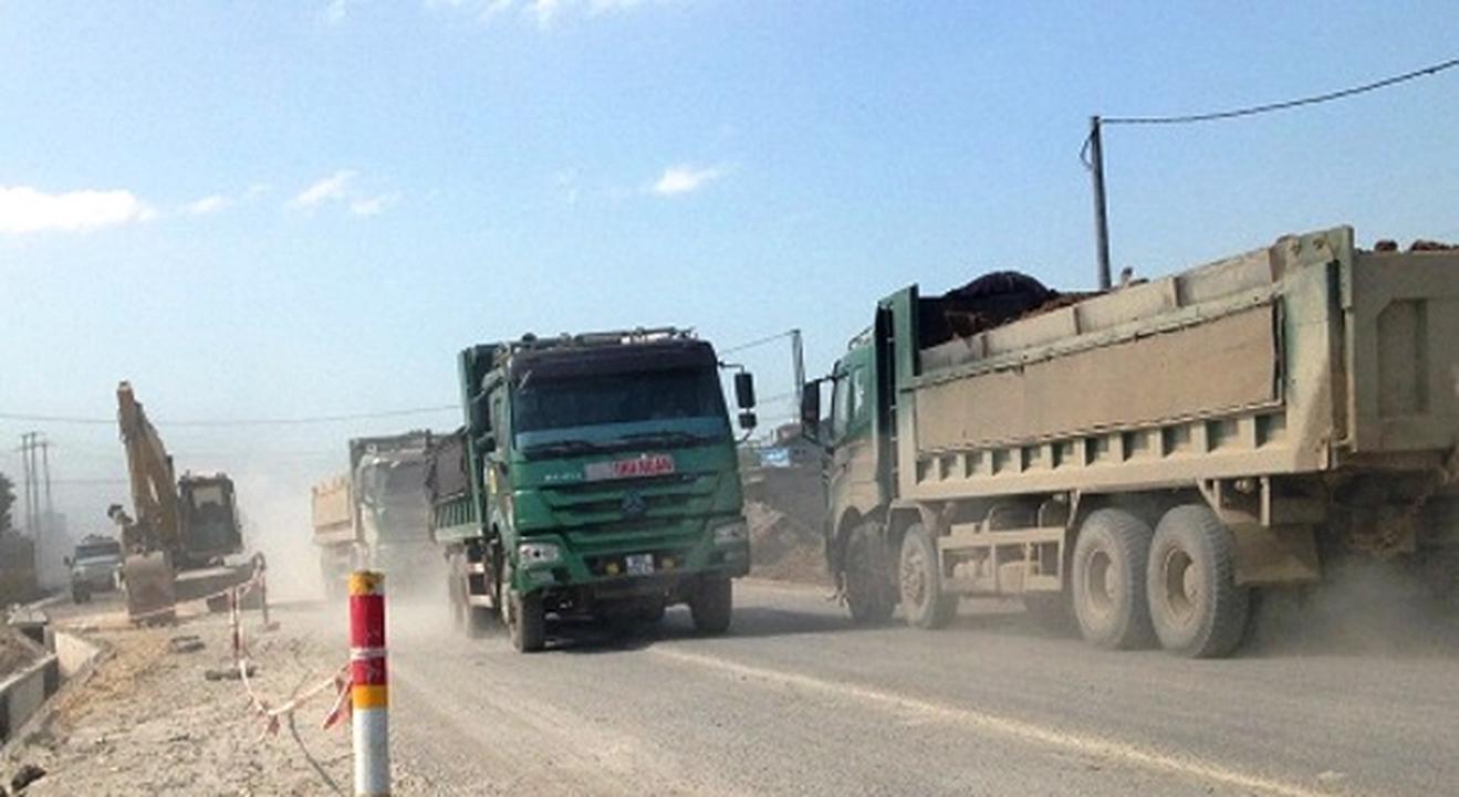 Ô nhiễm khói bụi, tiếng ồn từ xe chở vật liệu quá khổ, quá tải ảnh hưởng trực tiếp tới đời sống của người dân. Ảnh: Phạm Duy