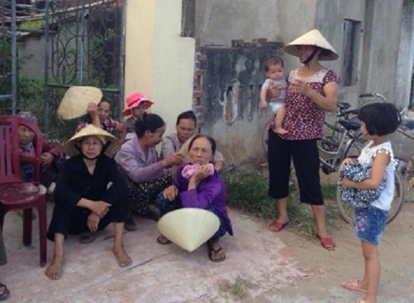 Người dân thôn Xuân Phụ tố Trung tâm Nghiên cứu và Sản xuất giống thủy sản gây nhiễm mặn. Ảnh: Văn Thanh