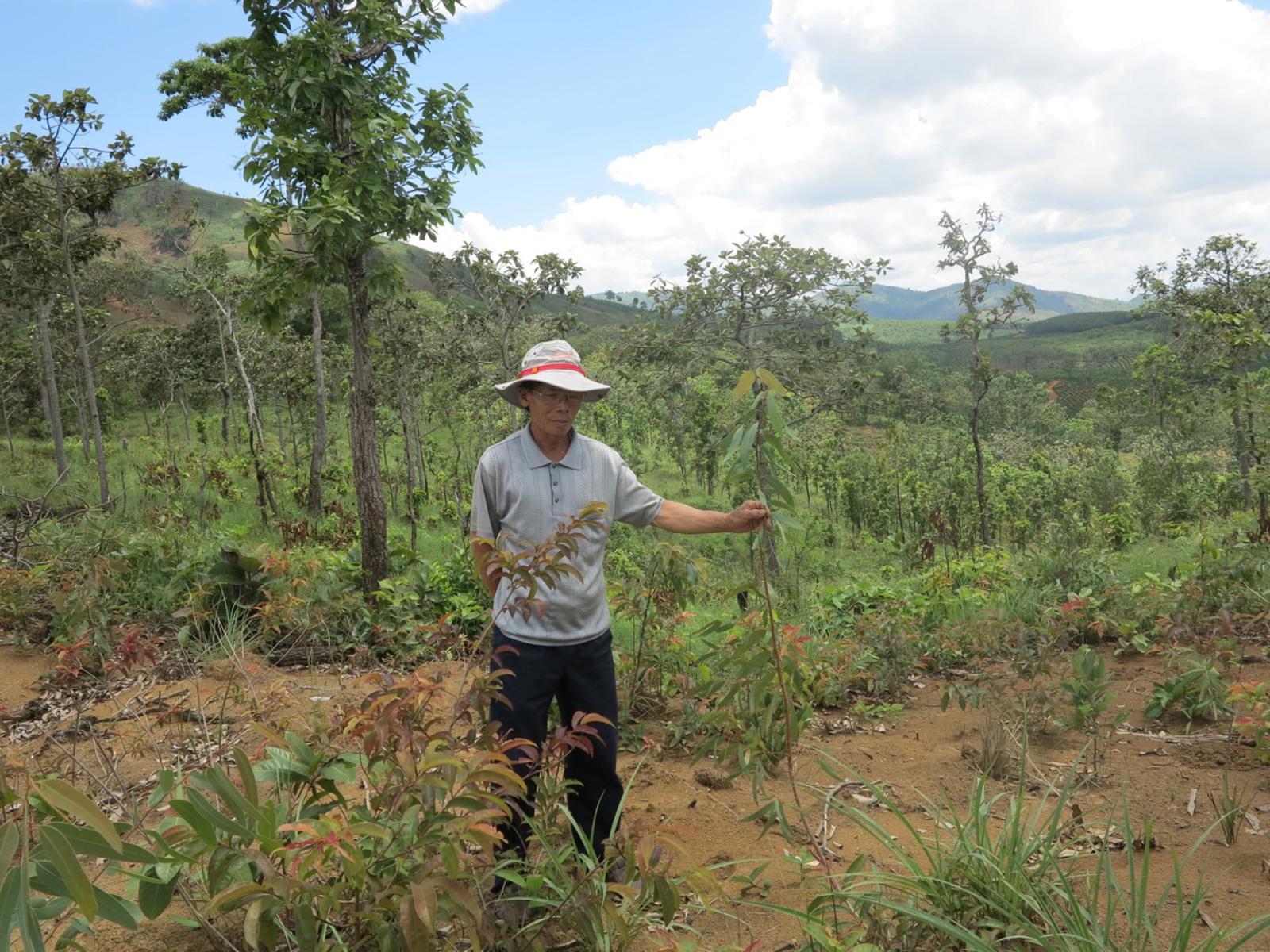 Ông Nguyễn Cang, thôn Anh Dũng, xã Sa Nghĩa bên diện tích rừng trồng