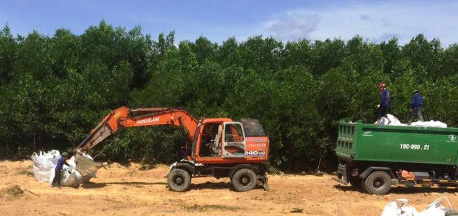 Hai ngày qua, ông Nguyễn Thượng Hiền, Cục trưởng Cục Quản lý chất thải và Cải thiện môi trường thuộc Tổng cục Môi trường (Bộ Tài nguyên và Môi trường - TN&MT), dẫn đầu đoàn công tác của Bộ TN&MT có mặt tại hiện trường, chỉ đạo việc cất bốc.
