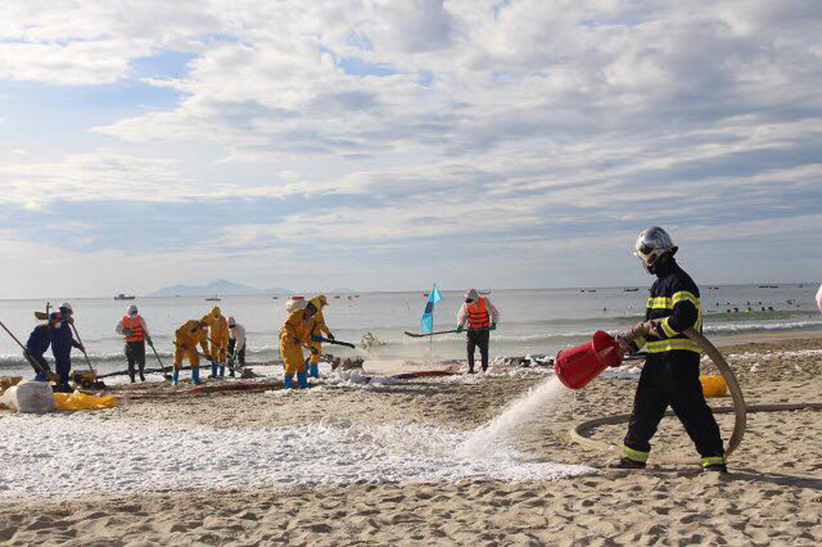 Khi phát hiện sự cố, Cty Cổ phần Xăng dầu khu vực V triển khai phương án ứng phó khẩn cấp, huy động lực lượng, trang thiết bị tổ chức thu gom dầu tràn trên biển, trên bờ và thông báo đến ngành chức năng để yêu cầu hỗ trợ xử lý.