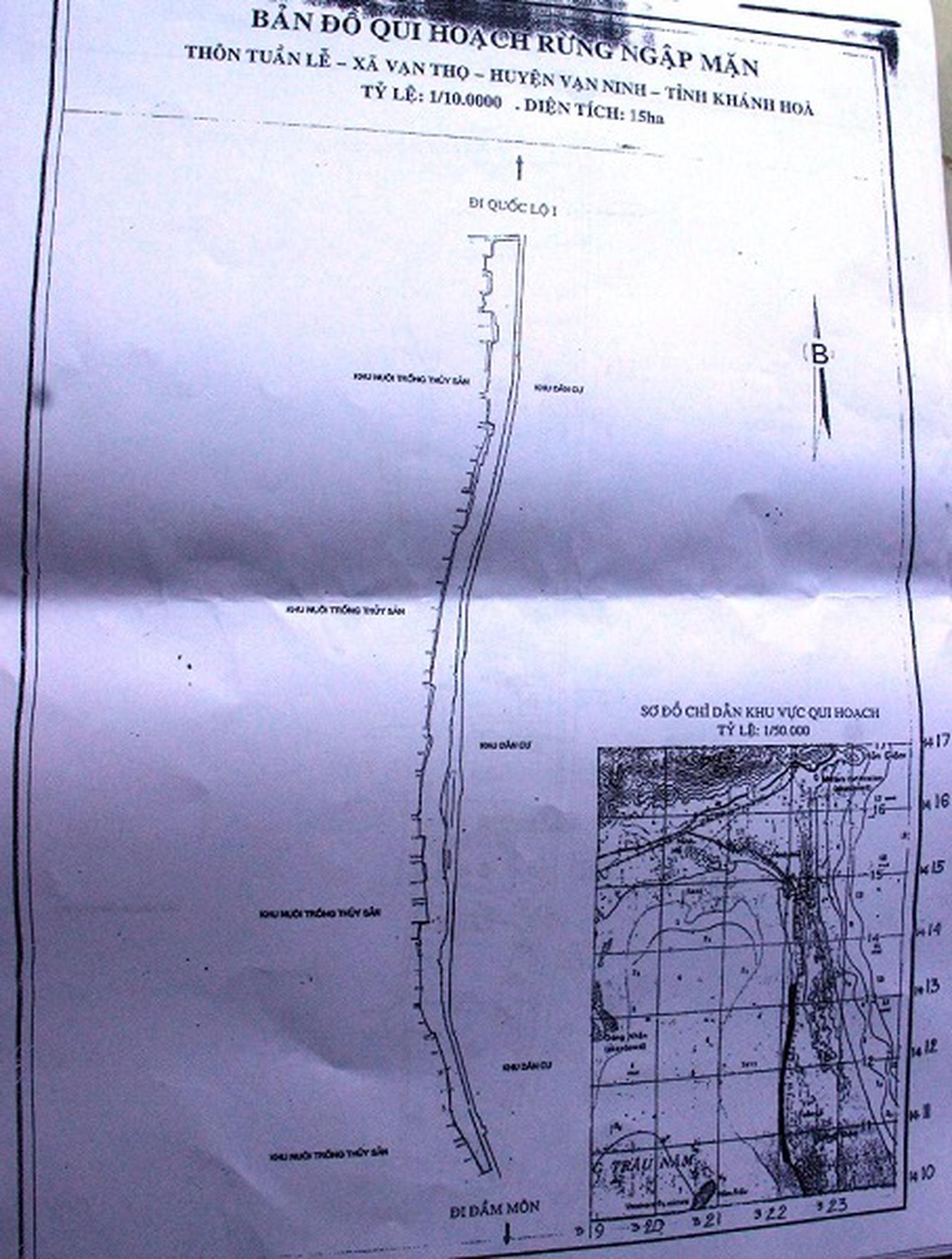 Ngoài ra, UBND huyện Vạn Ninh xây dựng phương án, chính sách bảo vệ đặc biệt trình UBND tỉnh phê duyệt. Và, ngày 5/12/2002, UBND huyện Vạn Ninh đã có tờ trình về phương án đầu tư, quản lý, bảo vệ khôi phục và phát triển rừng ngập mặn - rừng bần (thôn Tuần Lễ, xã Vạn Thọ). Dự toán kinh phí là 168 triệu đồng. Phương án trên đã được UBND tỉnh Khánh Hòa đồng ý phê duyệt.