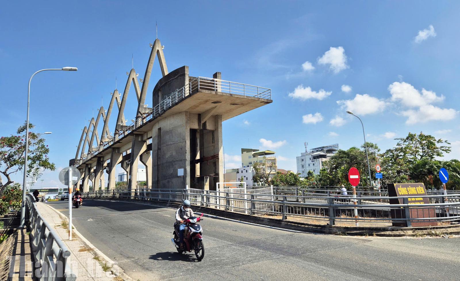 Công trình cống ngăn mặn, thoát lũ Sông Kiên tại phường Rạch Giá, tỉnh An Giang. Ảnh: Cảnh Nhật