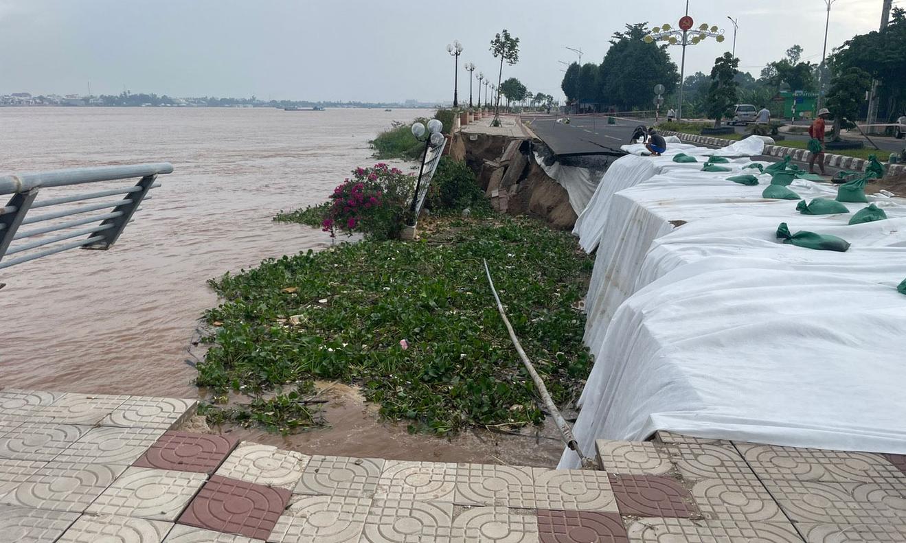 Đồng Tháp đã phải công bố tình trạng khẩn cấp về sạt lở bờ sông Tiền. Ảnh: ĐQ