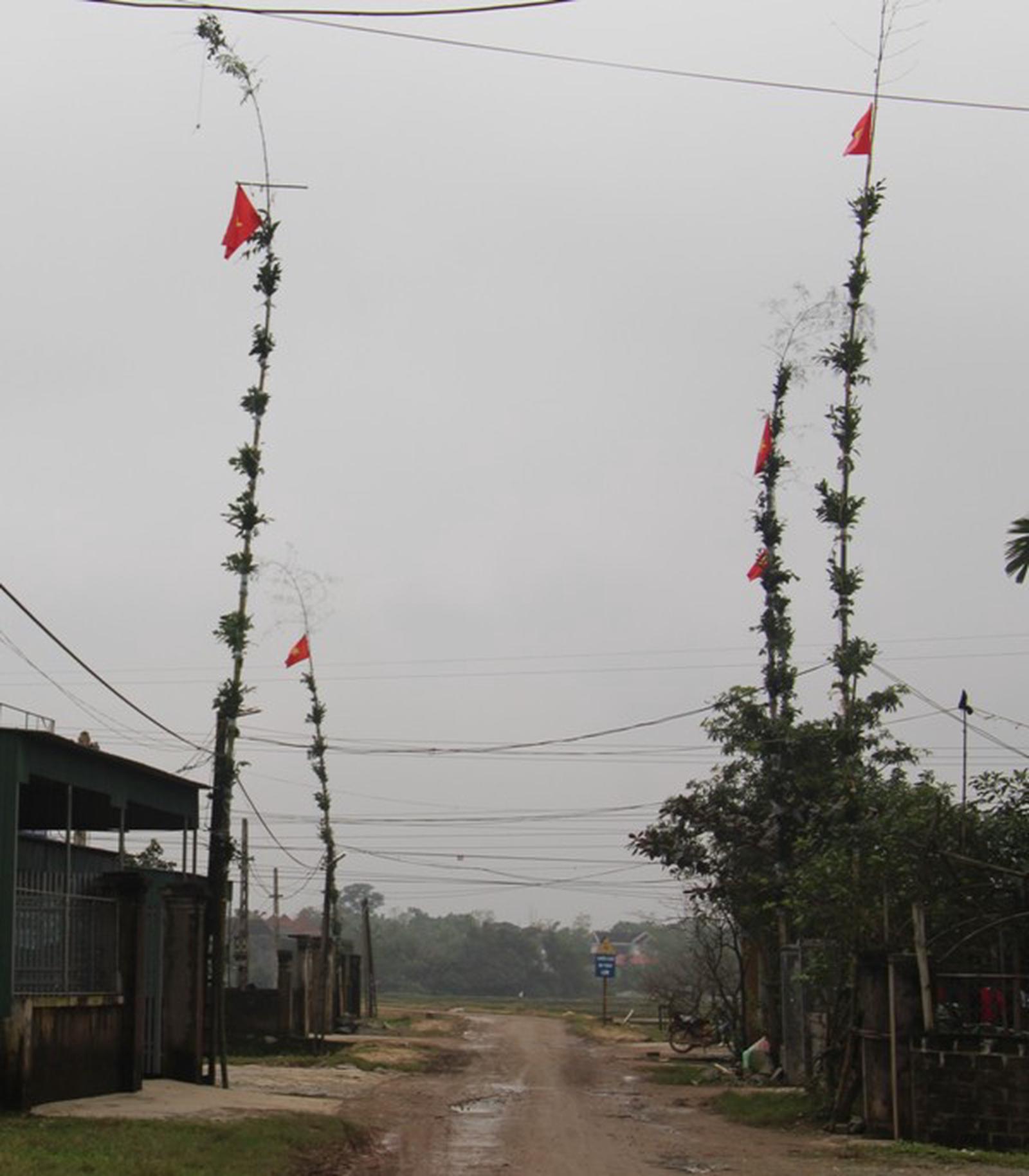 Người dân dựng cây nêu đón Tết Mậu Tuất 2018. Ảnh: TQ
