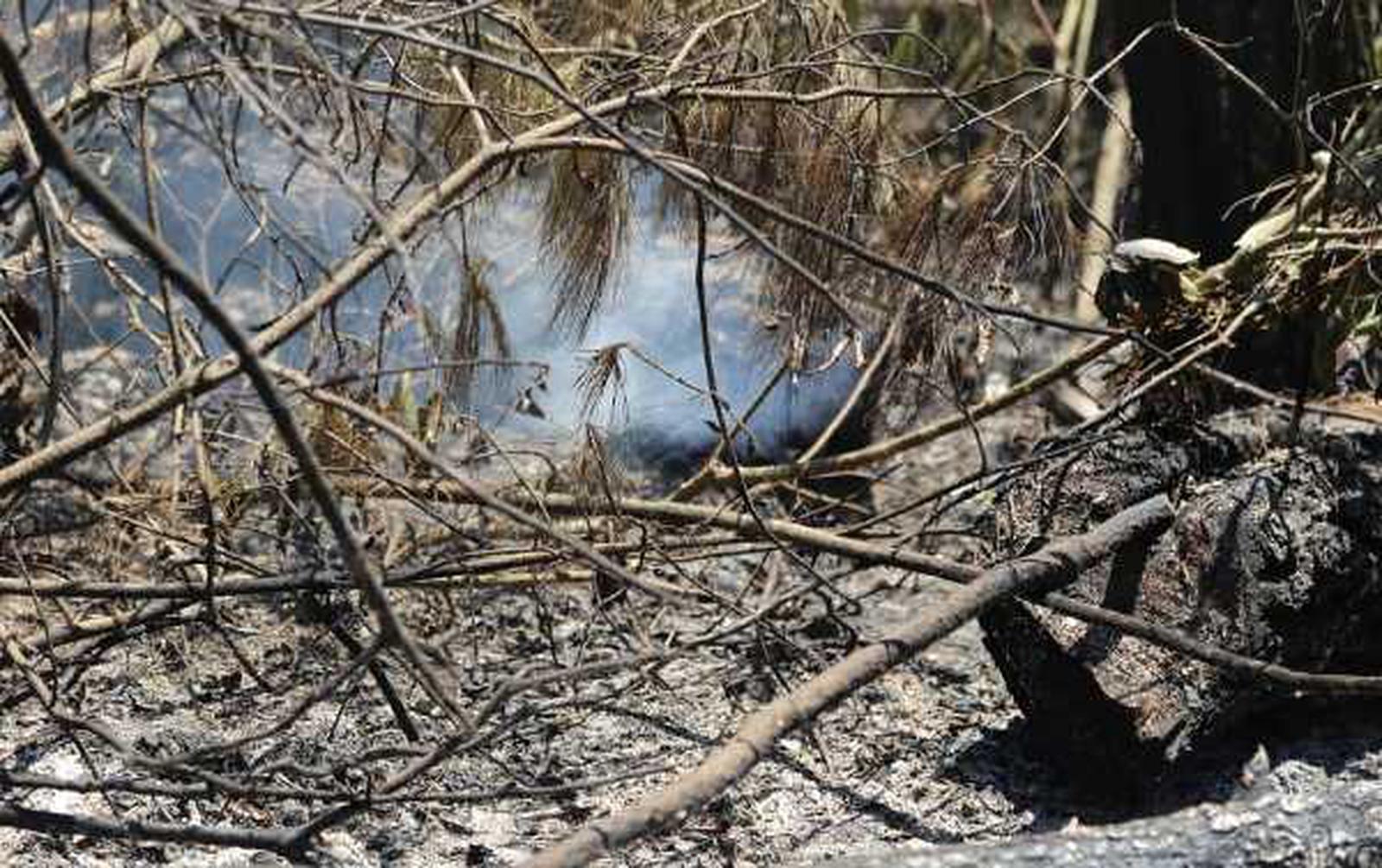 Rừng khô trụi lá sau “bão lửa”. Ảnh: HY