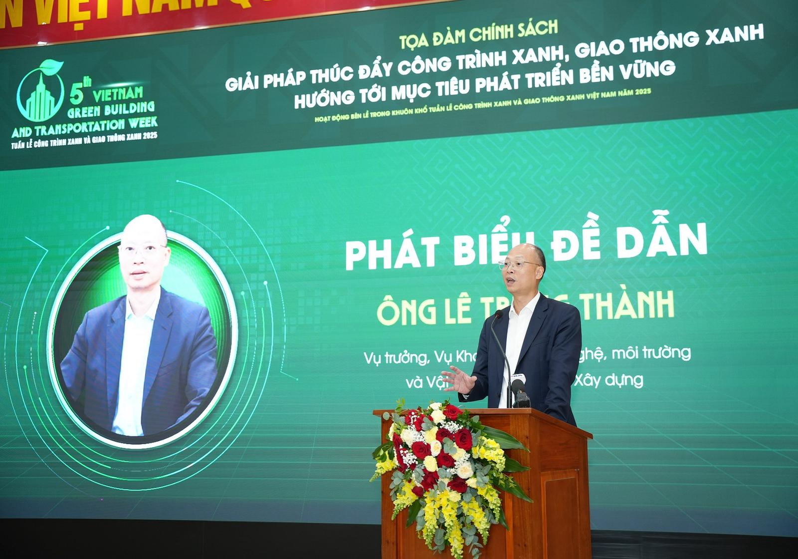 Phát biểu khai mạc tọa đàm, Thứ trưởng Bộ Xay dựng Nguyễn Văn Sinh nhấn mạnh, công trình xanh và giao thông xanh là hai cấu phần quan trọng của phát triển kinh tế xanh, góp phần giảm phát thải và tiết kiệm tài nguyên, đổi mới công nghệ, nâng cao chất lượng sống và sức cạnh tranh của nền kinh tế.