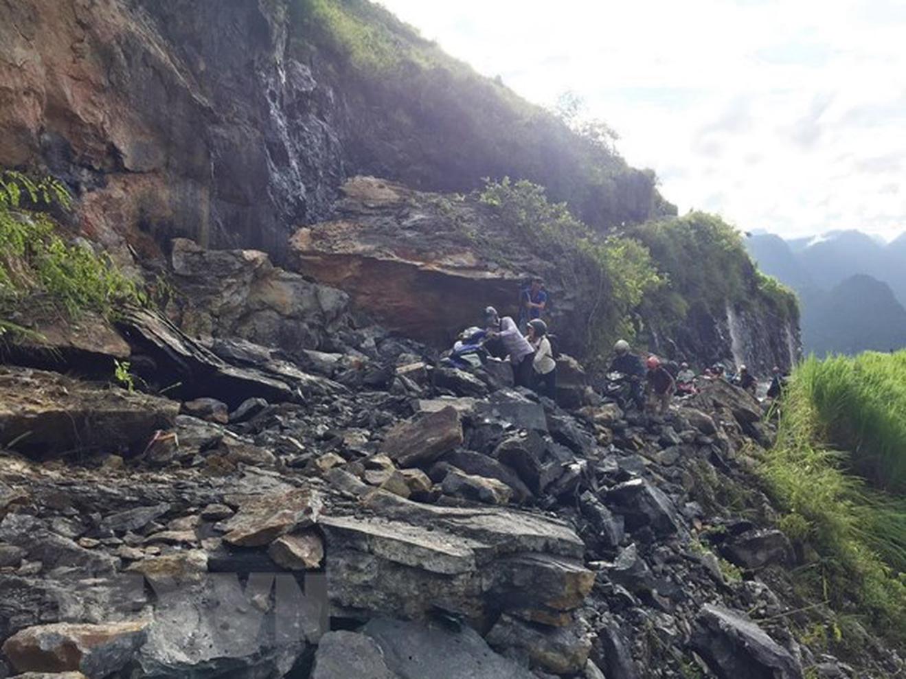 Ở nhiều đoạn đường ở Hà Giang, hàng nghìn mét khối đất đá tràn xuống mặt đường giao thông khiến người dân, các phương tiện đi lại gặp rất nhiều khó khăn.