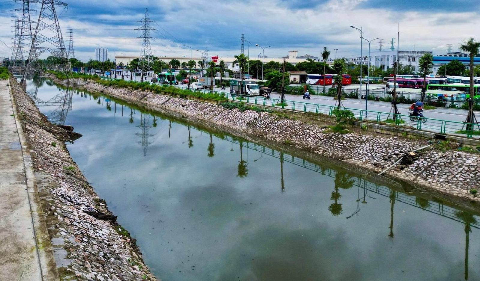 Sông Kim Ngưu có tổng chiều dài 3,5km, có điểm đầu từ hạ lưu cống hộp trên phố Lò Đúc, điểm cuối đổ vào kênh bao Yên Sở. Ảnh: TP