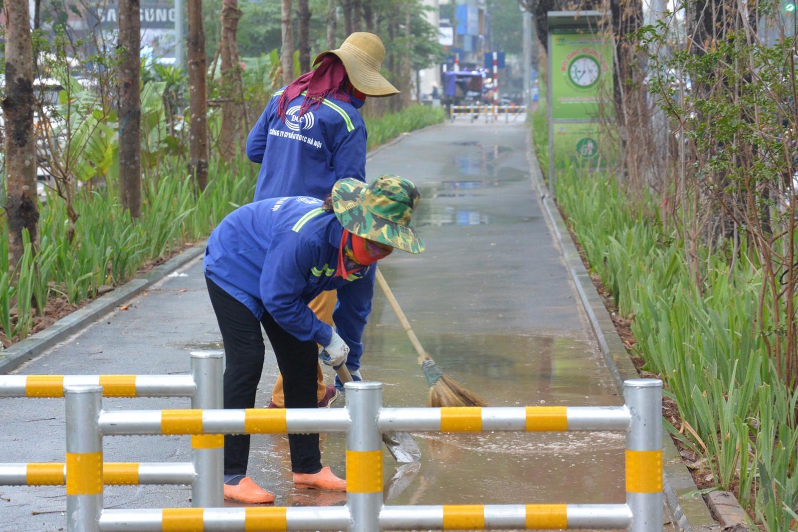 Sau khi thi công xong mỗi đoạn, đơn vị thi công dùng máy xịt áp lực cao để rửa sạch đường phố