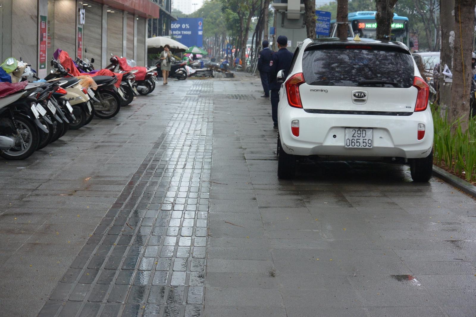 Vỉa hè một số đoạn trên tuyến phố Thái Hà đã được thi công xong với diện mạo mới sạch và đẹp hơn dành cho người đi bộ