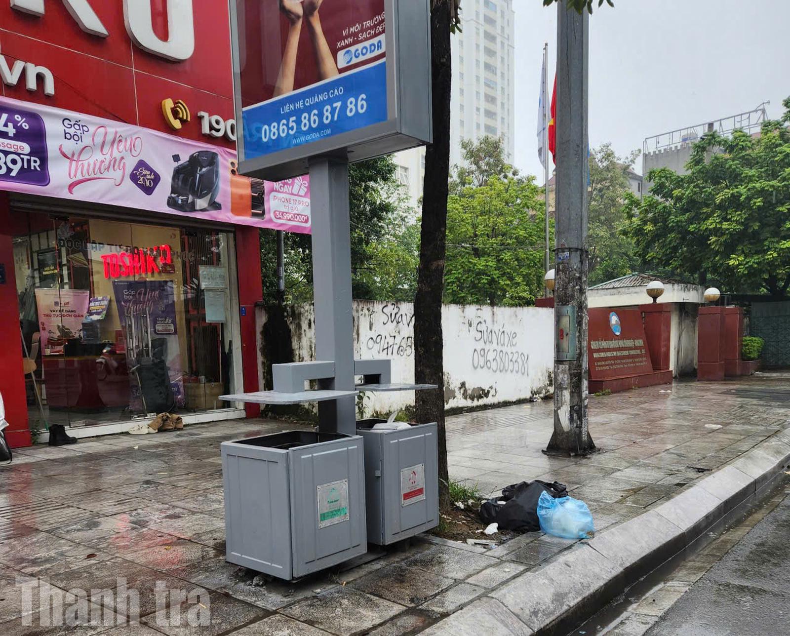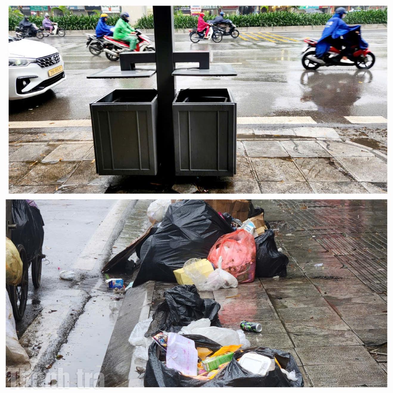Theo ghi nhận thực tế, tại dọc tuyến đường Nguyễn Trãi, Trần Duy Hưng các thùng rác công nghệ trở nên lãng phí khi xung quanh ngổn ngang túi rác, đồ bỏ đi, khiến bộ mặt đô thị nhếch nhác. Do dung tích nhỏ, không đáp ứng được lượng rác thực tế, nhiều nơi “có cũng như không”.