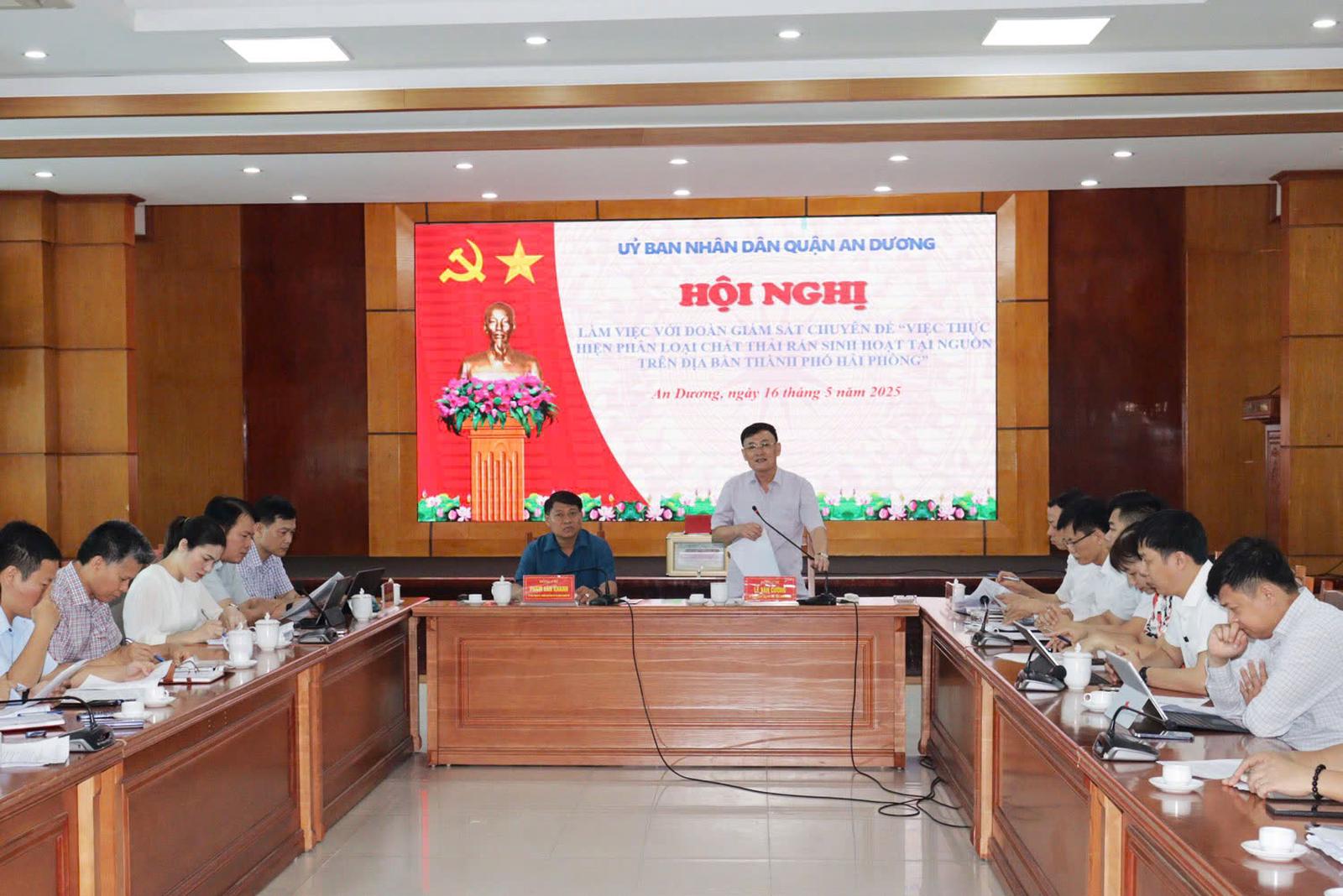 Phát biểu kết luận, Trưởng Ban Đô thị HĐND thành phố Phạm Văn Khanh đề nghị quận An Dương bám sát sự chỉ đạo của Thành uỷ tại Chỉ thị số 34 và kế hoạch của UBND thành phố. Tiếp tục làm tốt công tác tuyên truyền, rõ người rõ việc, phân công đảng viên phụ trách hộ gia đình, thường xuyên kiểm tra, giám sát, có biện pháp xử lý hành chính những vi phạm. Đồng thời, tiếp tục đầu tư về nguồn lực có phương án cụ thể khi chuyển sang mô hình chính quyền 2 cấp, không để bị gián đoạn, ảnh hưởng đến hiệu quả việc phân loại chất thải rắn sinh hoạt tại nguồn.