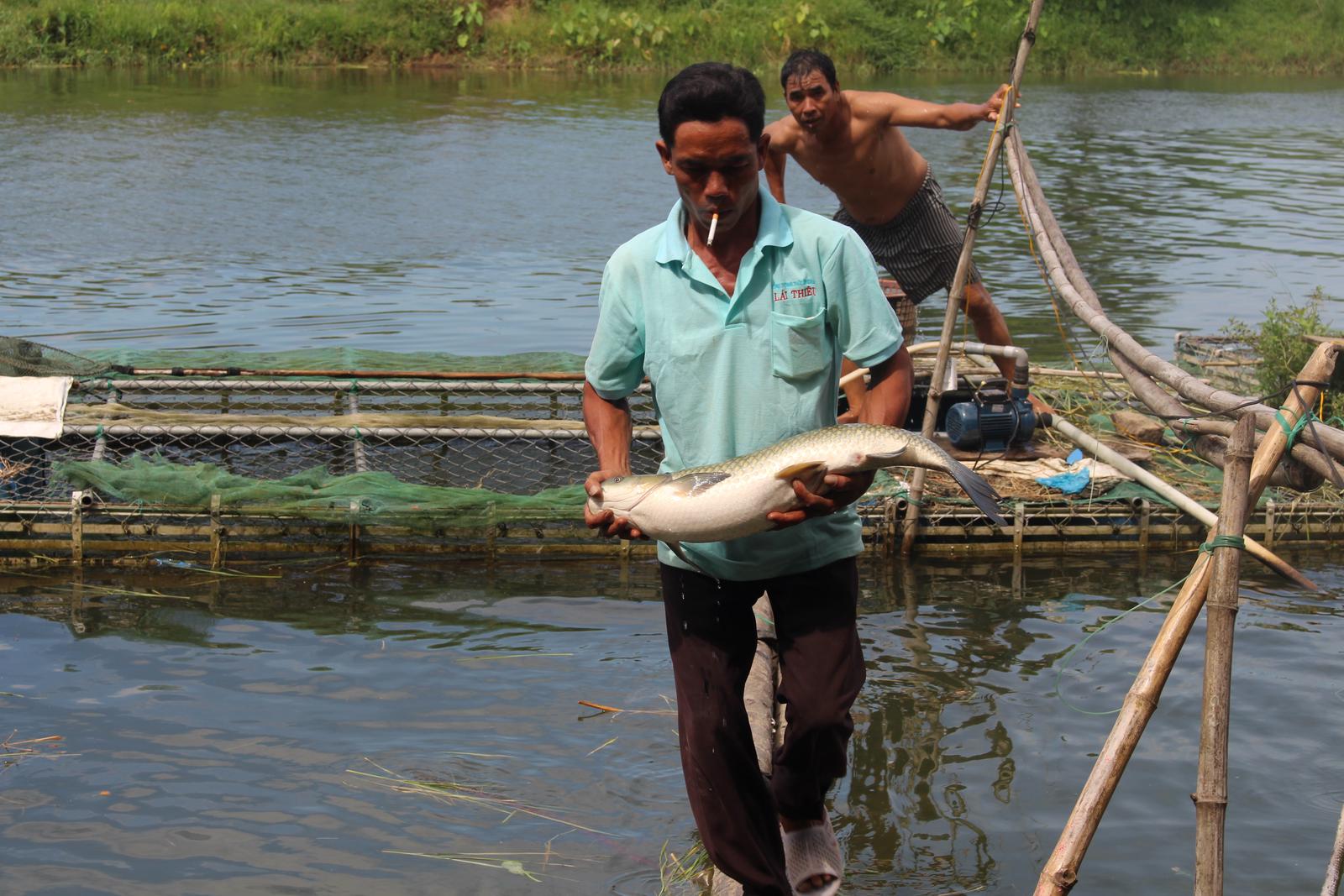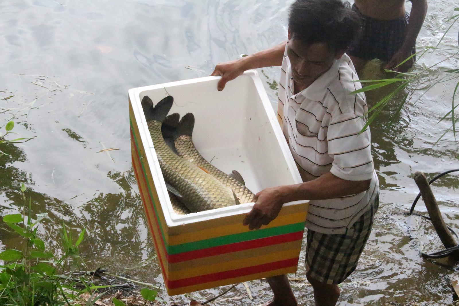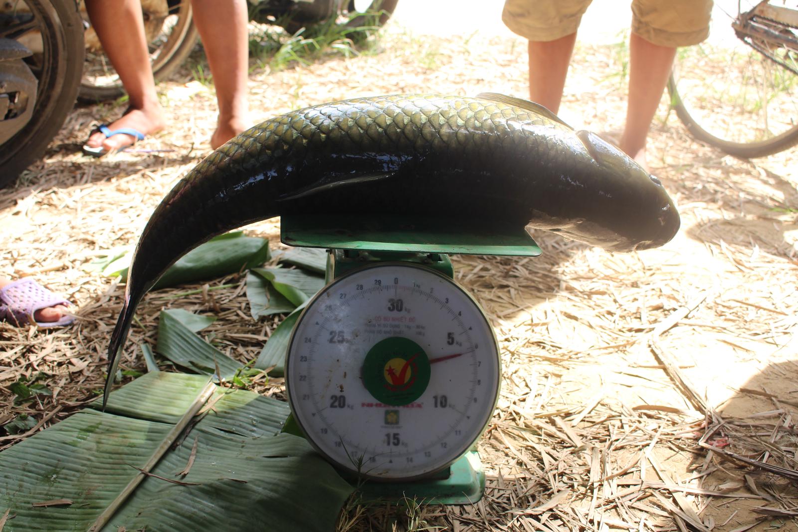 Người dân mang những con cá lớn lên bờ để bán. Ảnh: T.N