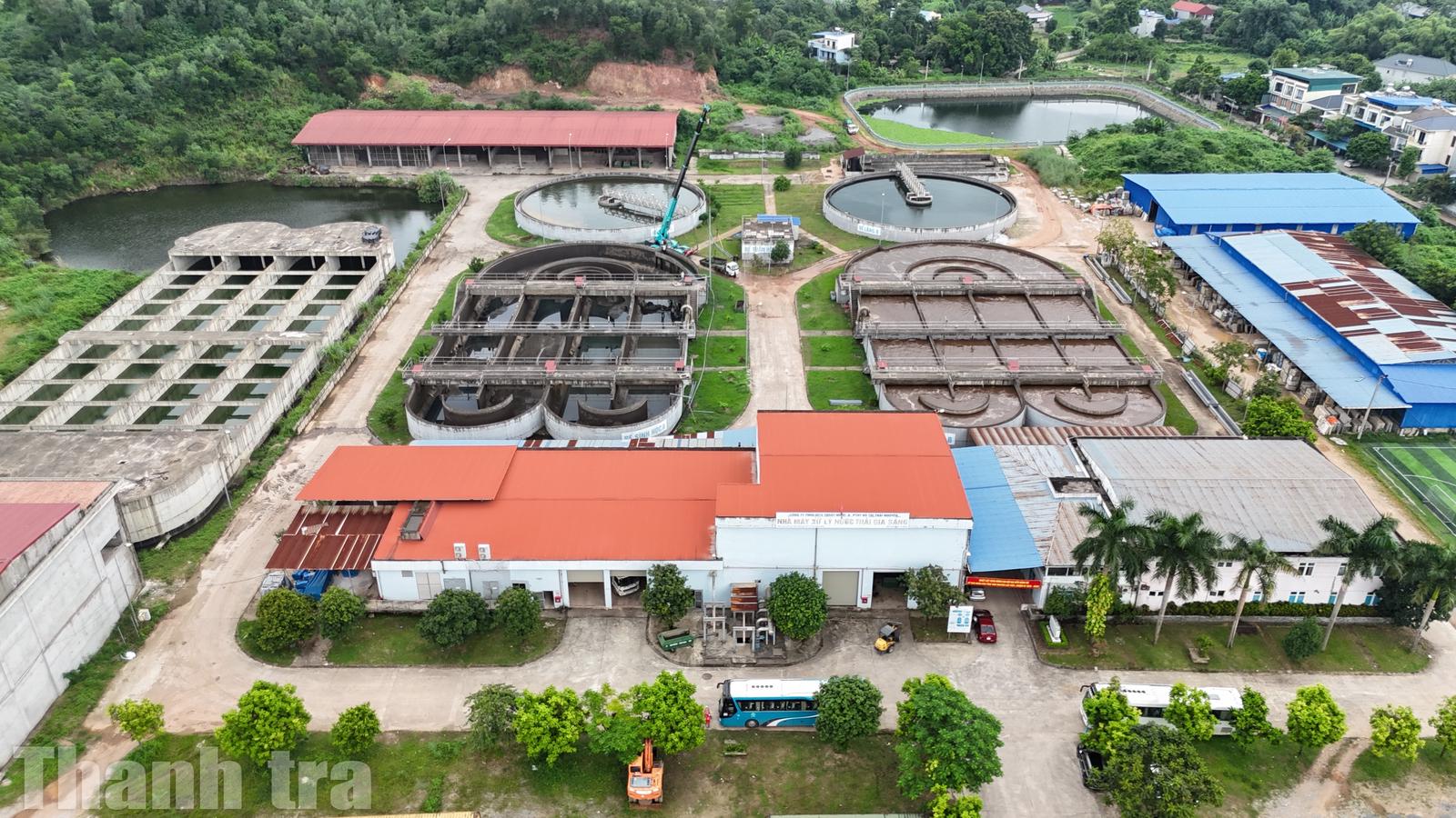 Hệ thống xử lý nước thải thành phố Thái Nguyên trước mưa lũ. Ảnh: Hoàng Long