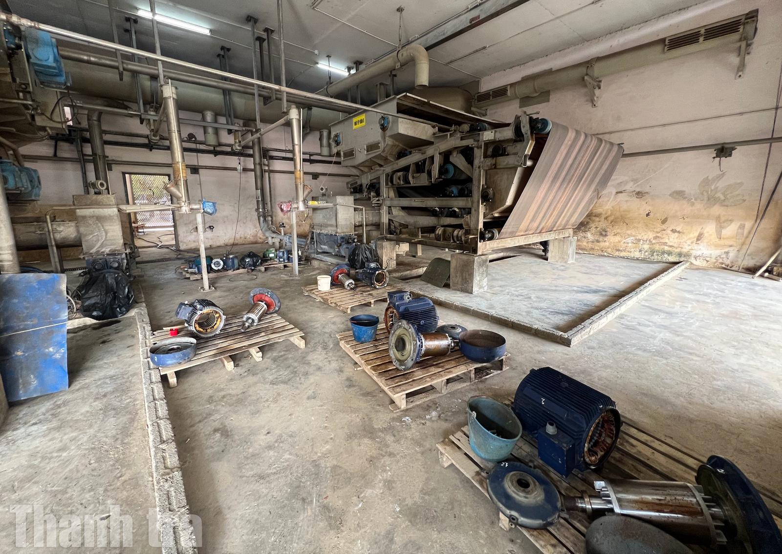 Một số máy móc được tháo ra để sửa chữa, giảm bớt thiệt hại bởi thiên tai. Ảnh: Hoàng Long