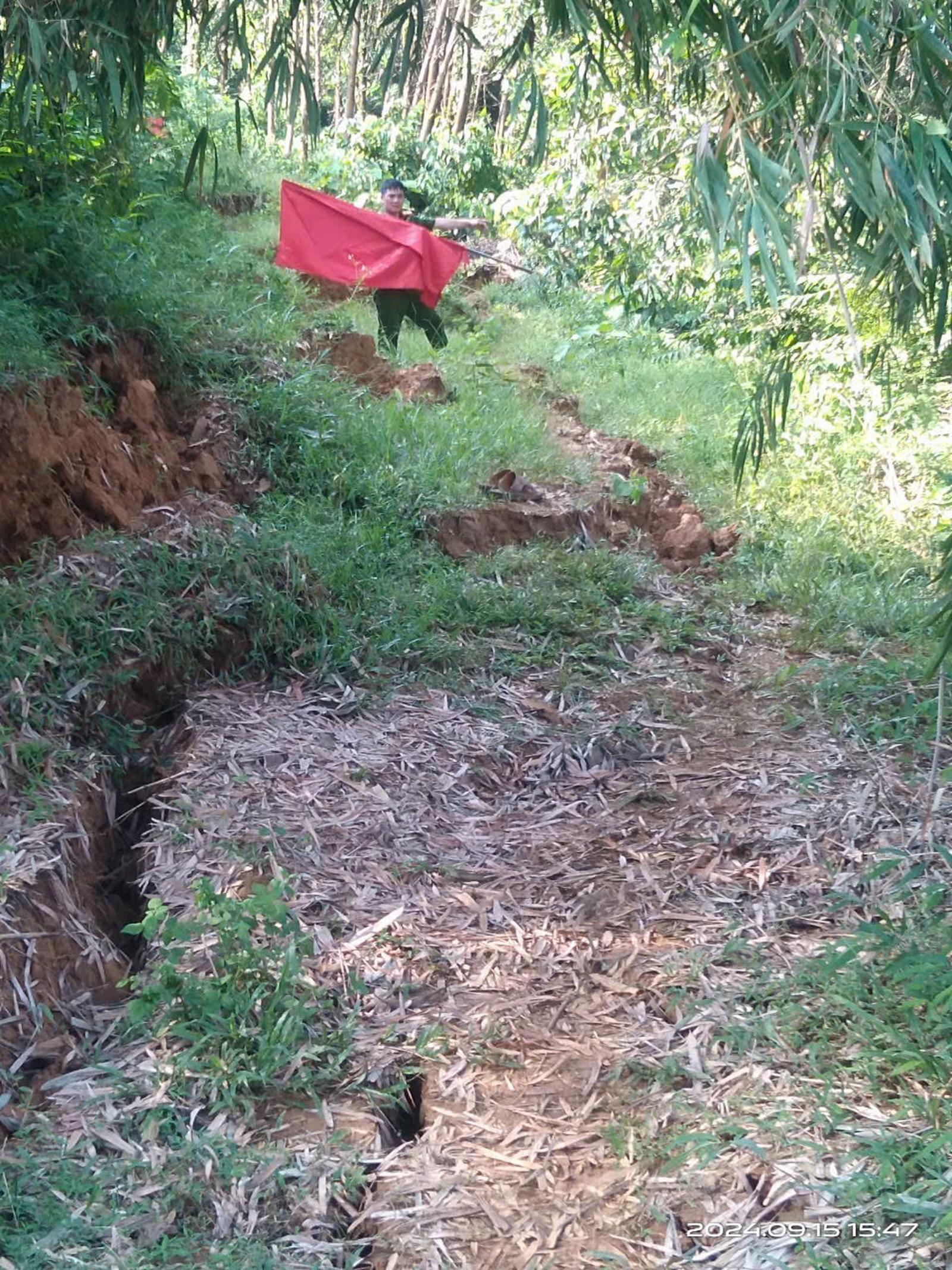 Thông tin từ chính quyền địa phương cho biết, chiều 15/9, tại 1 quả đồi (còn gọi là đồi Cây Đa Bái Rài) đang có 2 vết nứt dài từ 200 đến 300m dọc theo quả đồi.