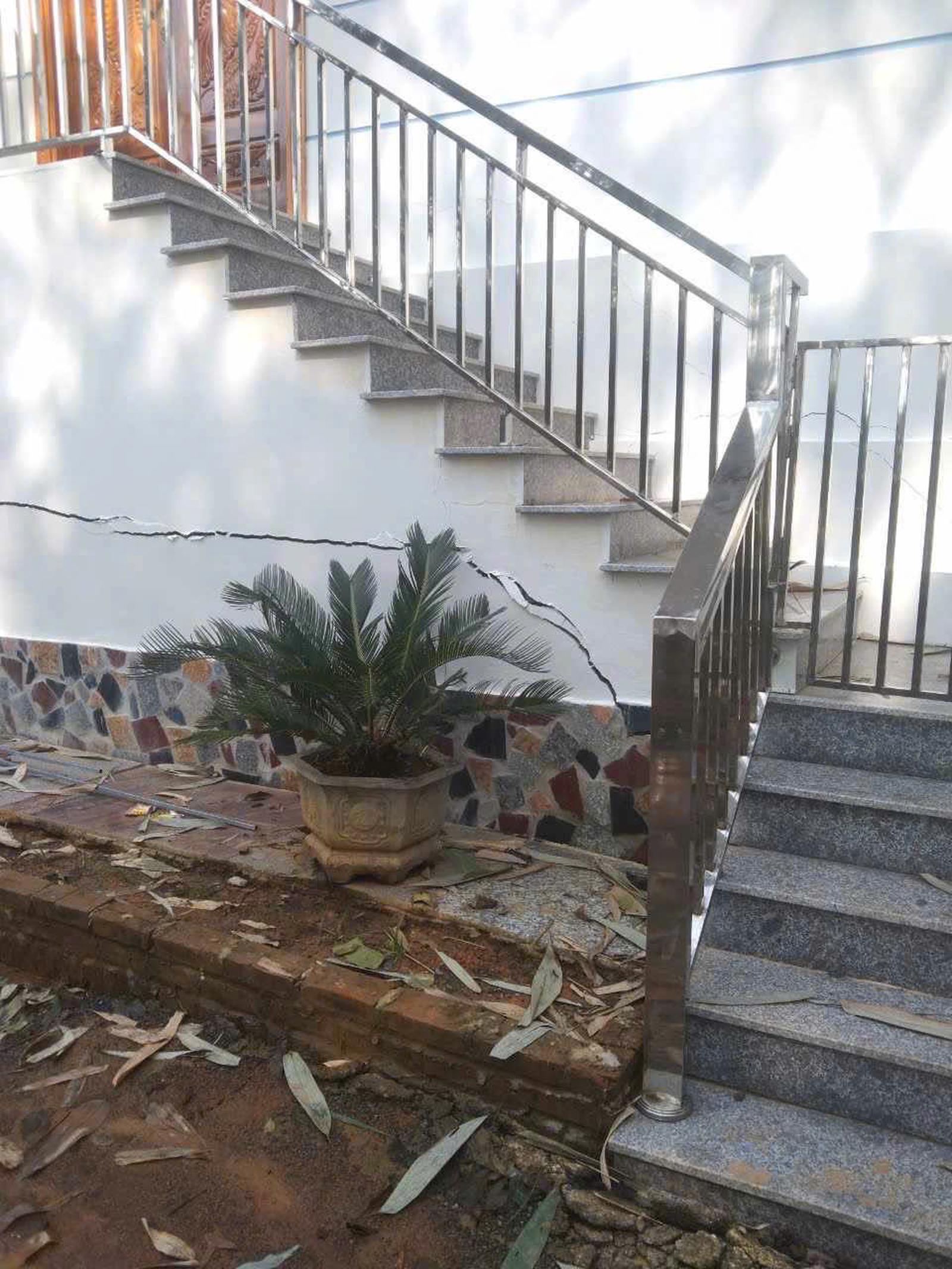 Từ chiều 15/9, đã xuất hiện vết nứt tại nhà của người dân dưới chân đồi. Ảnh: Ngô Thuỷ