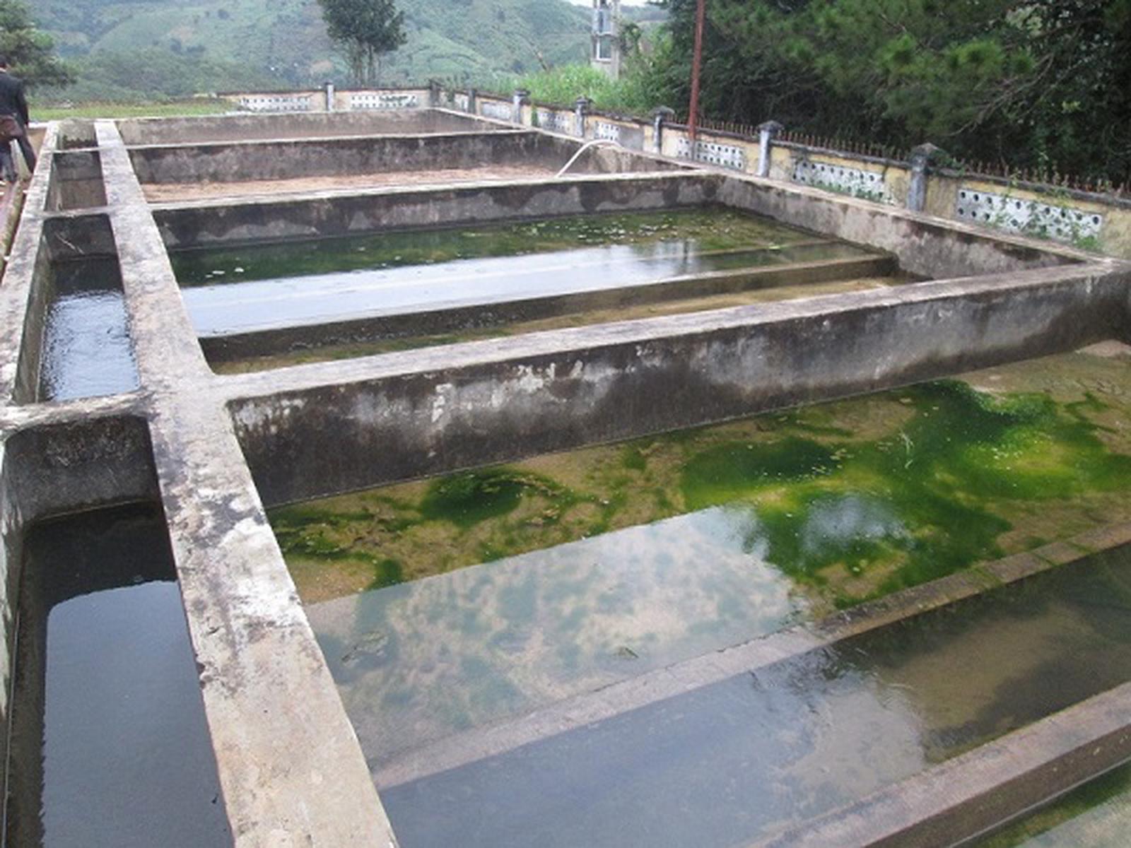 Bể lọc ở Nhà máy Nước Tô Hạp đầy rong, rêu. Ảnh: Xuân Hướng
