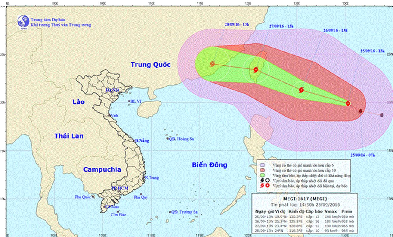 Theo Trung tâm Dự báo Khí tượng Thủy văn Trung ương, hiện nay (25/9), trên vùng biển ngoài khơi xa phía Đông Bắc đảo Luzon (Philippines) một cơn bão mạnh đang hoạt động và có tên quốc tế là MEGI.