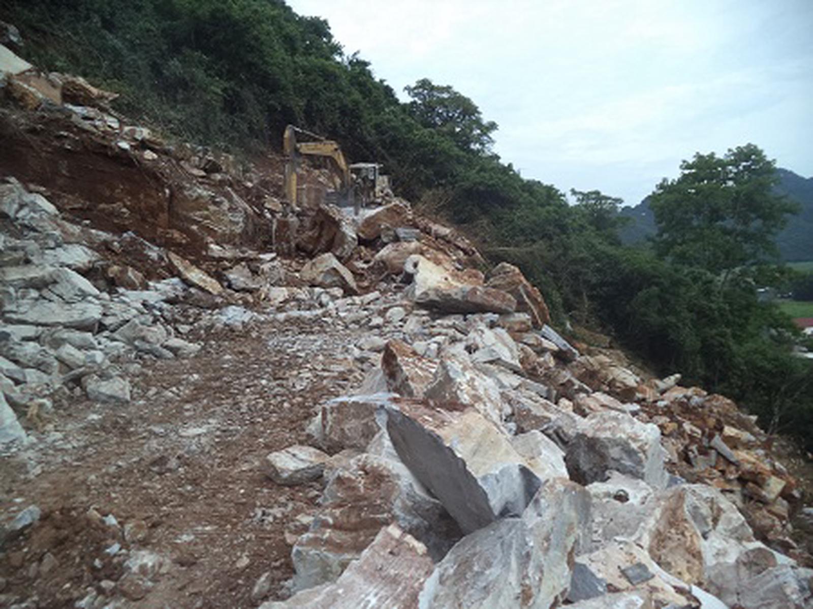 Dù đã hết phép khai thác nhưng Cty Cổ phần Xuất nhập khẩu Lạng Sơn vẫn ngang nhiên khai thác tại mỏ Thung Bốn. Ảnh: Lương Ý