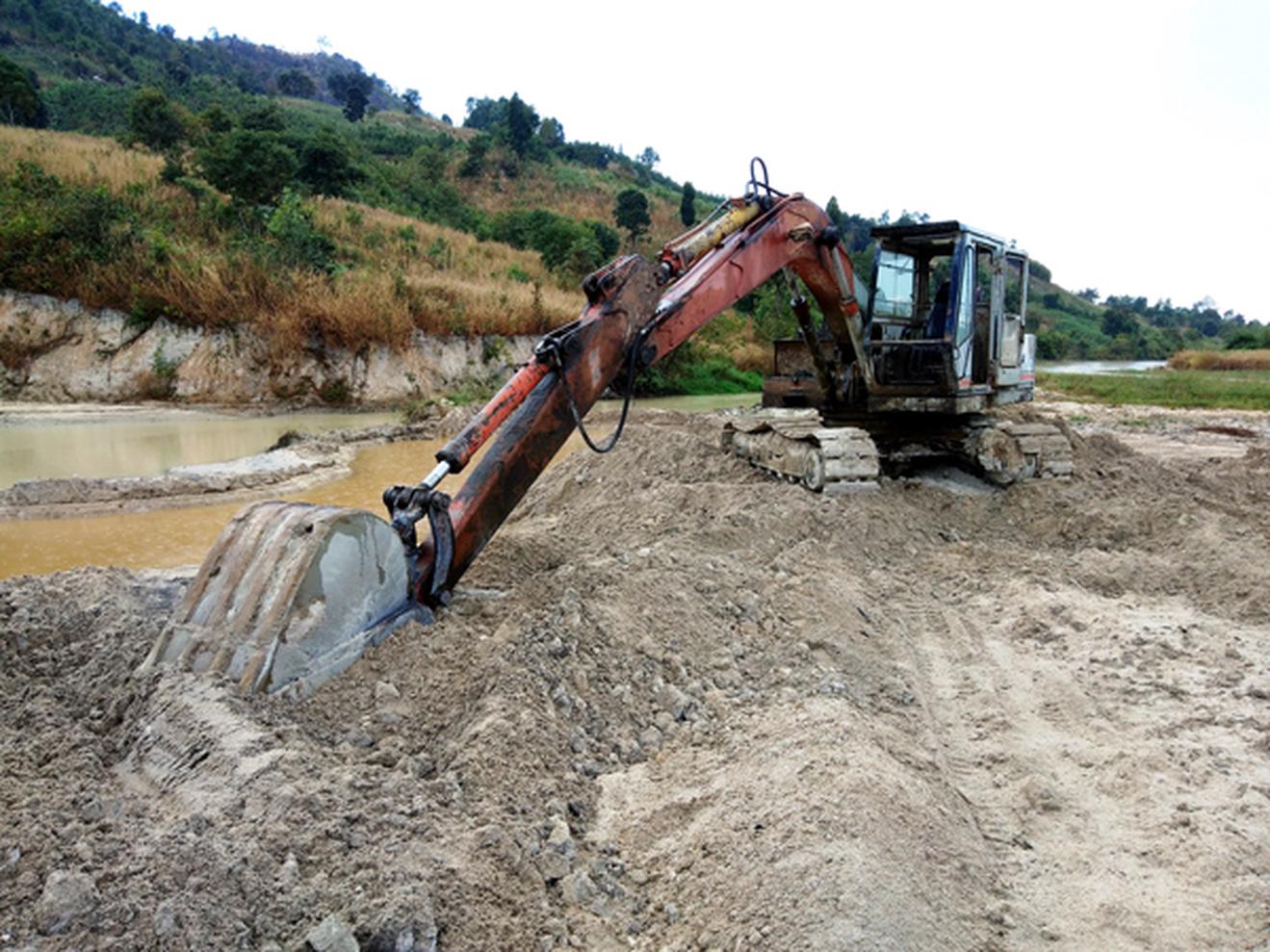 Máy múc đang khai thác cát trái phép tại tại làng Plei Chor (xã Hòa Bình, TP Kon Tum). Ảnh: Lương Ý
