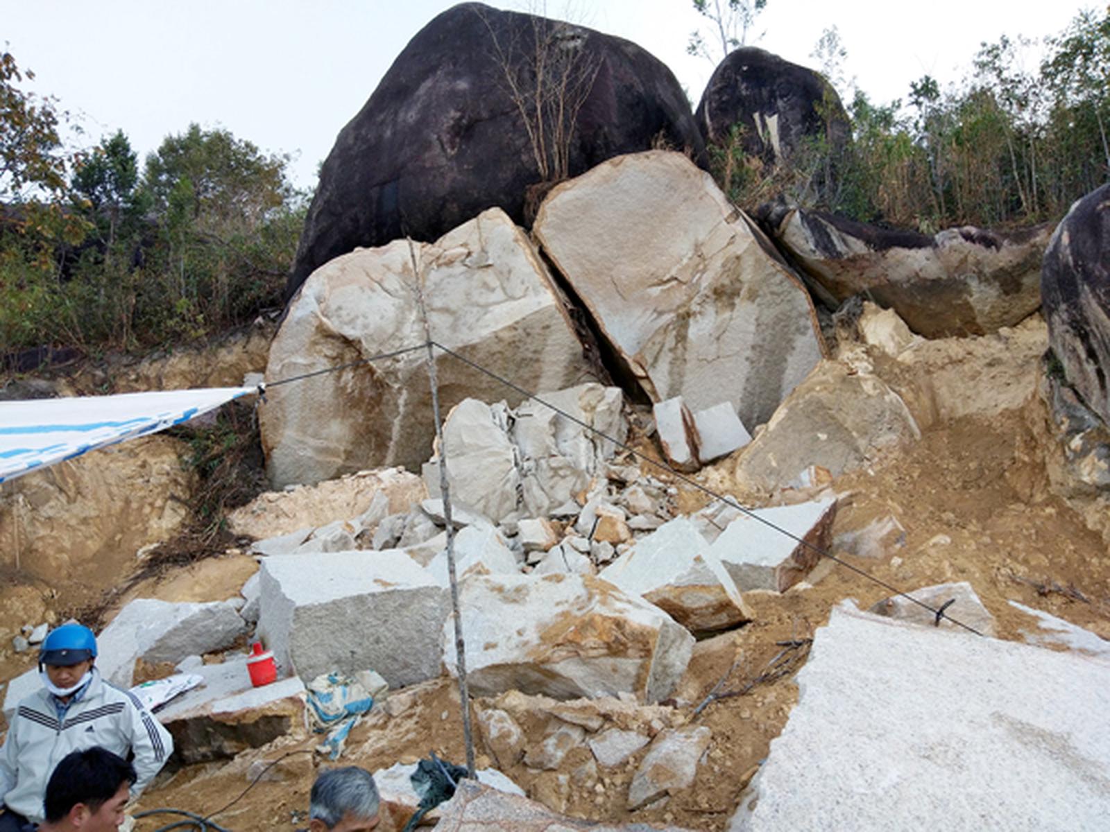 Không chỉ khai thác cát trái phép mà cách điểm khai thác cát trên khoảng 1km là bãi khai thác đá mồ côi. Tại đây xuất hiện nhiều máy móc, lán trại và có rất nhiều phiến đá được đào bới và xẻ thành những viên đá để chở đi... Qua tìm hiểu, việc khai thác đá cũng đã diễn ra hơn 1 tháng nay nhưng chính quyền dường như “không biết”.