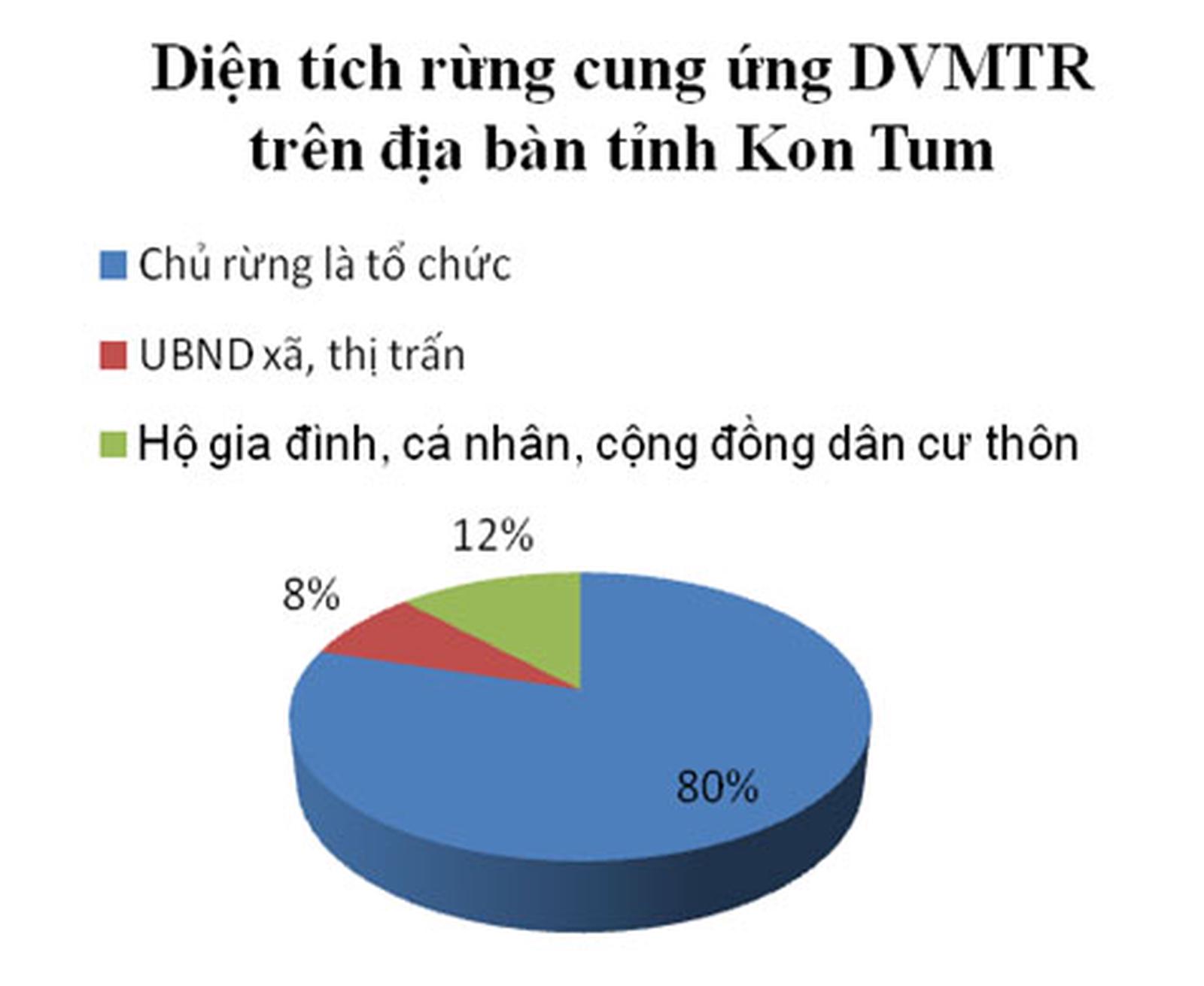 Theo kế hoạch đã được UBND tỉnh Kon Tum phê duyệt, diện tích rừng cung ứng DVMTR năm 2019 hơn 360.673 ha chiếm khoảng 64% diện tích rừng toàn tỉnh (không tính diện tích cây cao su, đặc sản), trong đó: 23 đơn vị chủ rừng là tổ chức quản lý hơn 287.161 ha; 74 UBND xã, thị trấn quản lý hơn 29.199 ha; 3.474 hộ gia đình, 34 cộng đồng dân cư được Nhà nước giao đất, giao rừng quản lý hơn 44.312 ha diện tích rừng cung ứng dịch vụ.