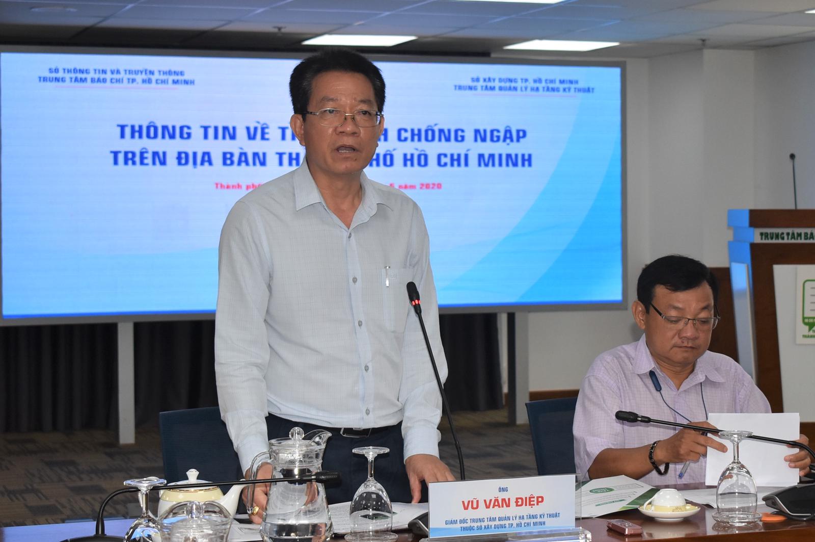 Giám đốc Trung tâm Quản lý hạ tầng kỹ thuật thuộc Sở Xây dựng TP Hồ Chí Minh Vũ Văn Điệp, thông tin về tình hình chống ngập trên địa bàn TP. Ảnh: TM