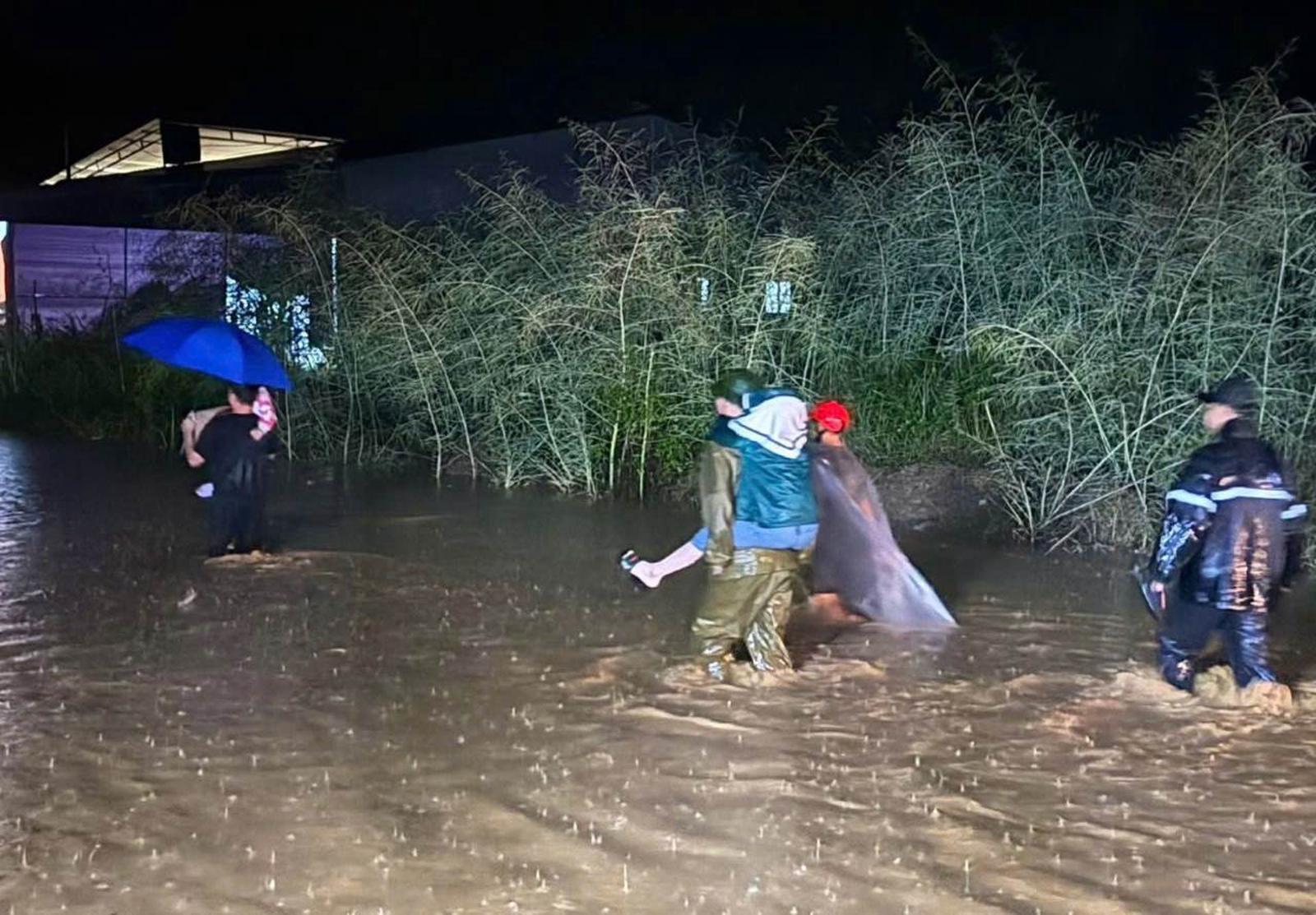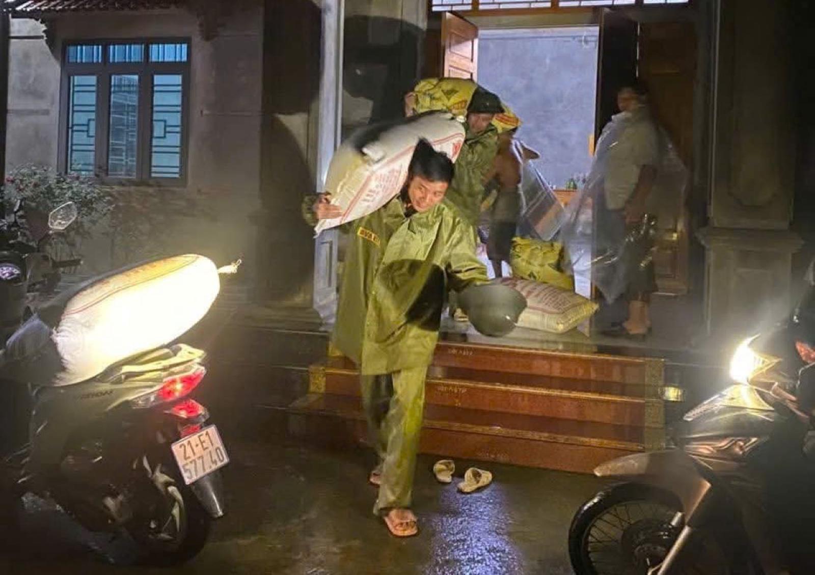 Lực lượng chức năng đội mưa đến hỗ trợ người dân di dời đến nơi an toàn. Ảnh: CACC