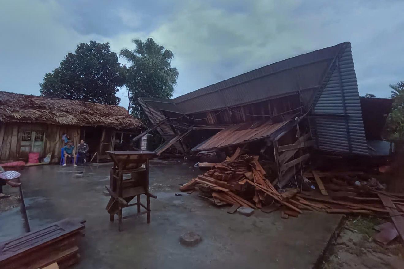 Một nhà dân ở Lào Cai bị đổ sau trận dông lốc chiều 19/7. Ảnh: Thanh Tiến