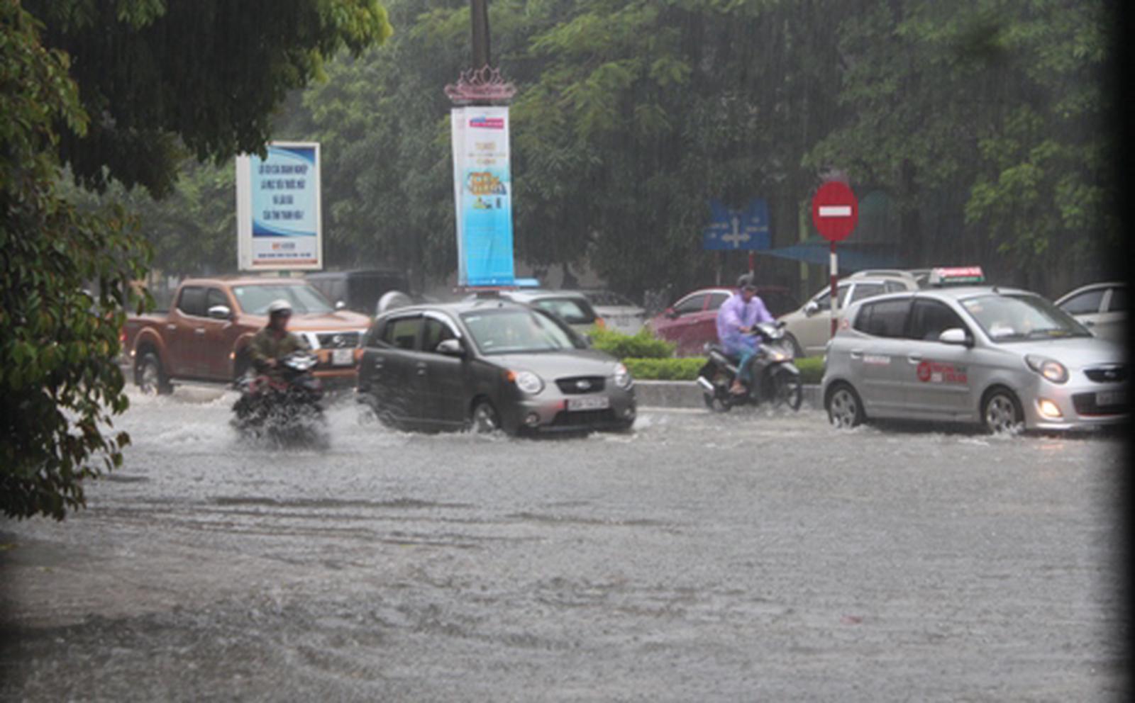 Đường biến thành ao do mưa lớn ở thành phố Thanh Hóa. Ảnh: VT
