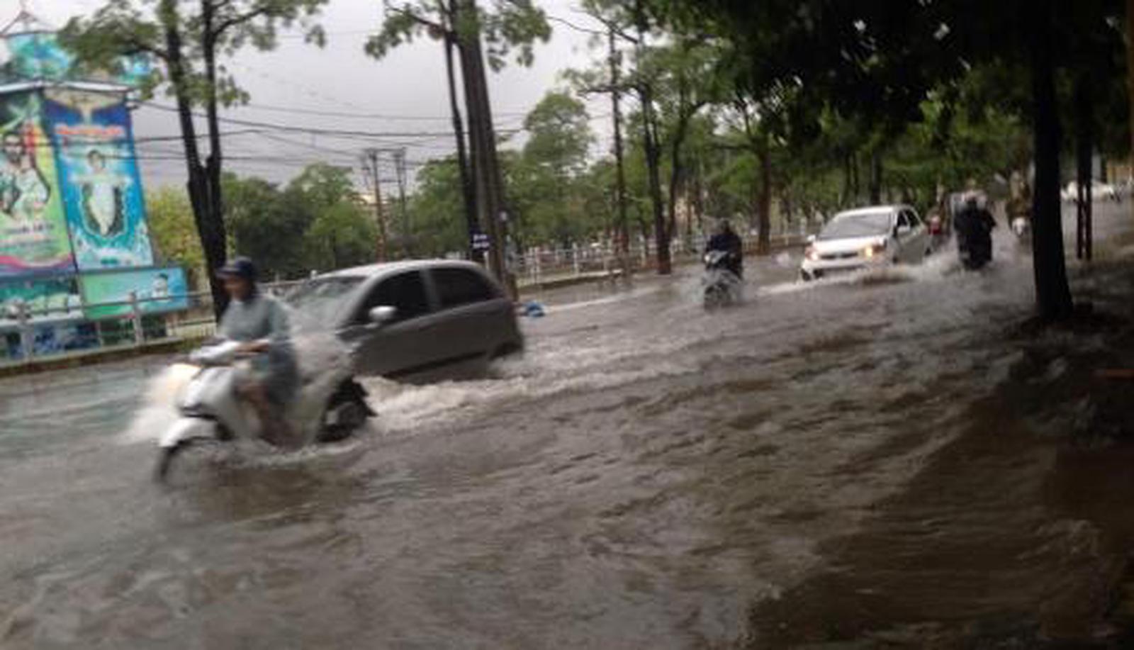 Chỉ trong khoảng thời gian ngắn các tuyến phố chính như đường Trần Phú, Triệu Quốc Đạt, Hạc Thành, Phan Châu Trinh… đều bị nhấn chìm trong nước.