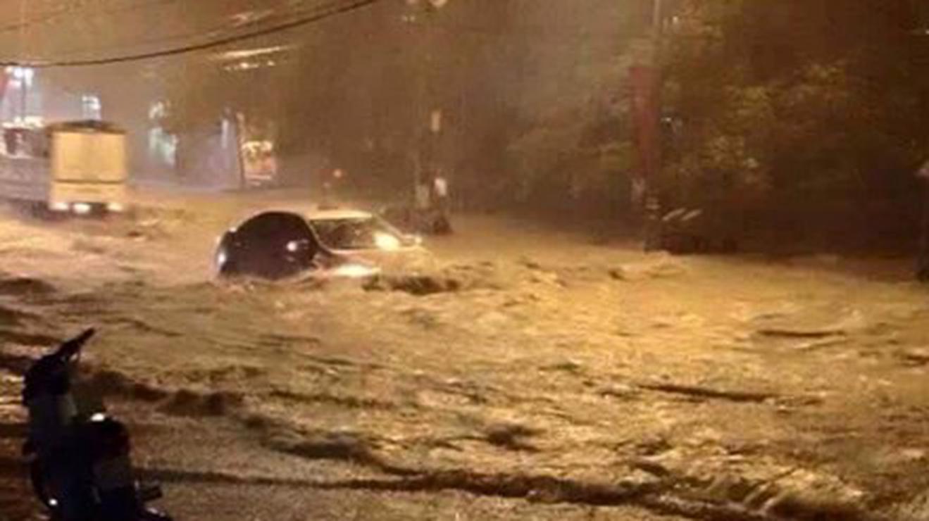 Mưa ngập tại TP Hà Tĩnh đêm 14/10. Ảnh: Dân Trí