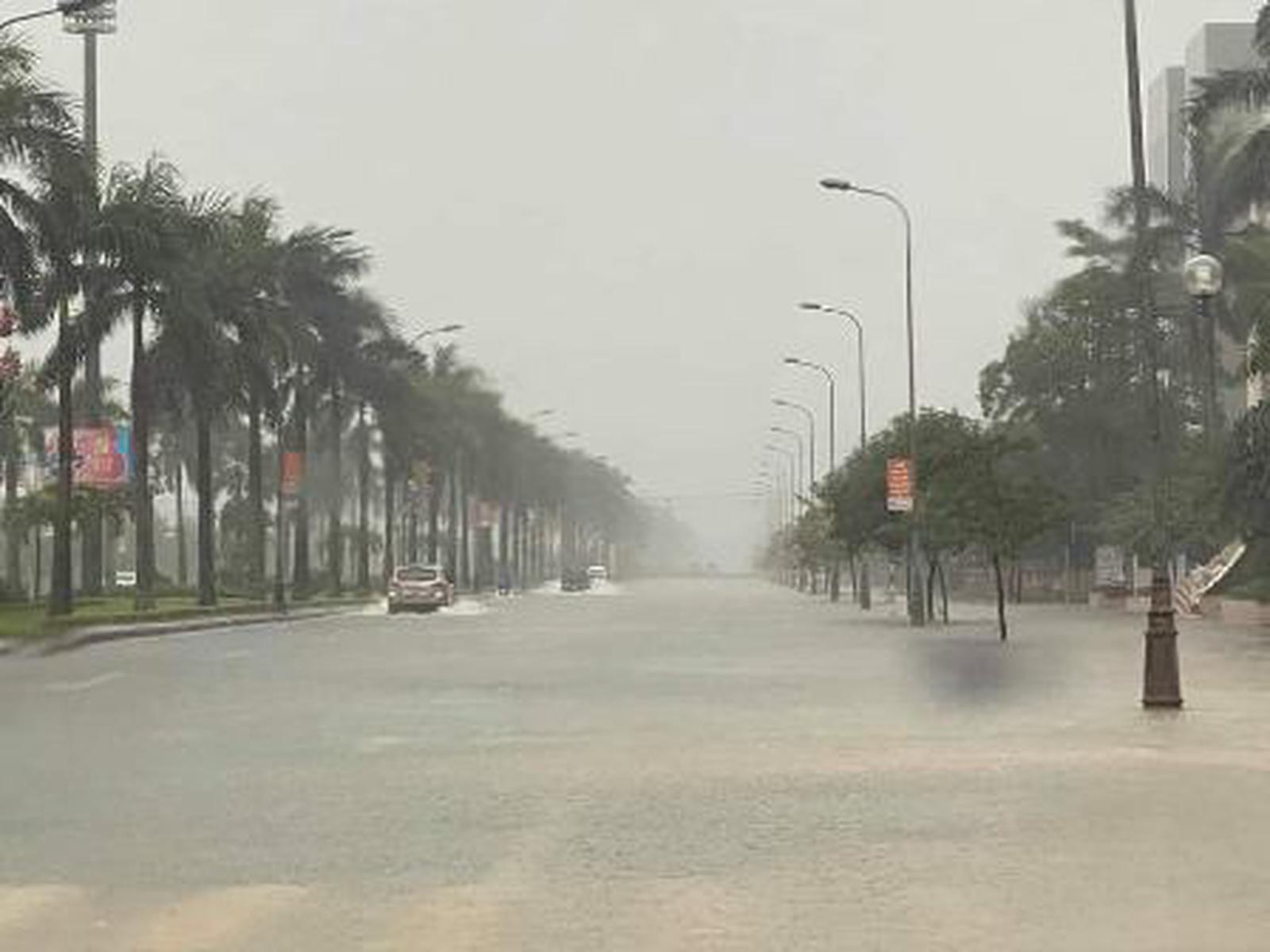 Nước ngập sâu tại nhiều tuyến đường ở TP Hà Tĩnh. Ảnh: Hải Yến