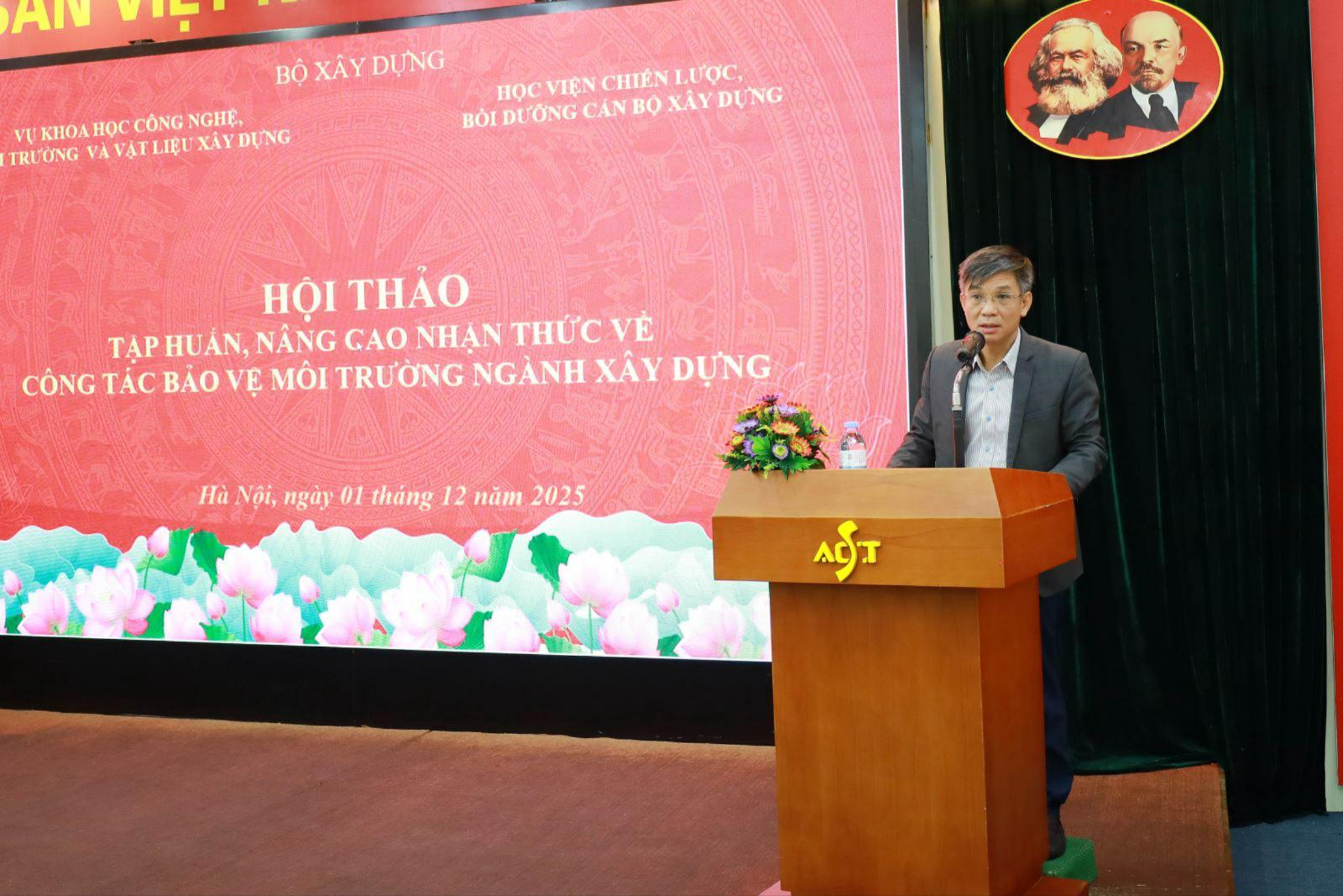 Phát biểu khai mạc, Phó Vụ trưởng Vụ Khoa học công nghệ, môi trường và Vật liệu xây dựng Nguyễn Hữu Tiến cho biết, trong bối cảnh hiện nay, công tác bảo vệ môi trường trong ngành Xây dựng đang bước vào giai đoạn đòi hỏi yêu cầu cao hơn về minh bạch dữ liệu, trách nhiệm giải trình và tuân thủ kỹ thuật. Bên cạnh đó, theo quy định của Chính phủ, năm 2026 là năm đầu tiên các doanh nghiệp phát thải lớn cả nước, trong đó có các doanh nghiệp hoạt động trong lĩnh vực xây dựng và giao thông vận tải phải thực hiện kiểm kê khí nhà kính theo quy định mới.