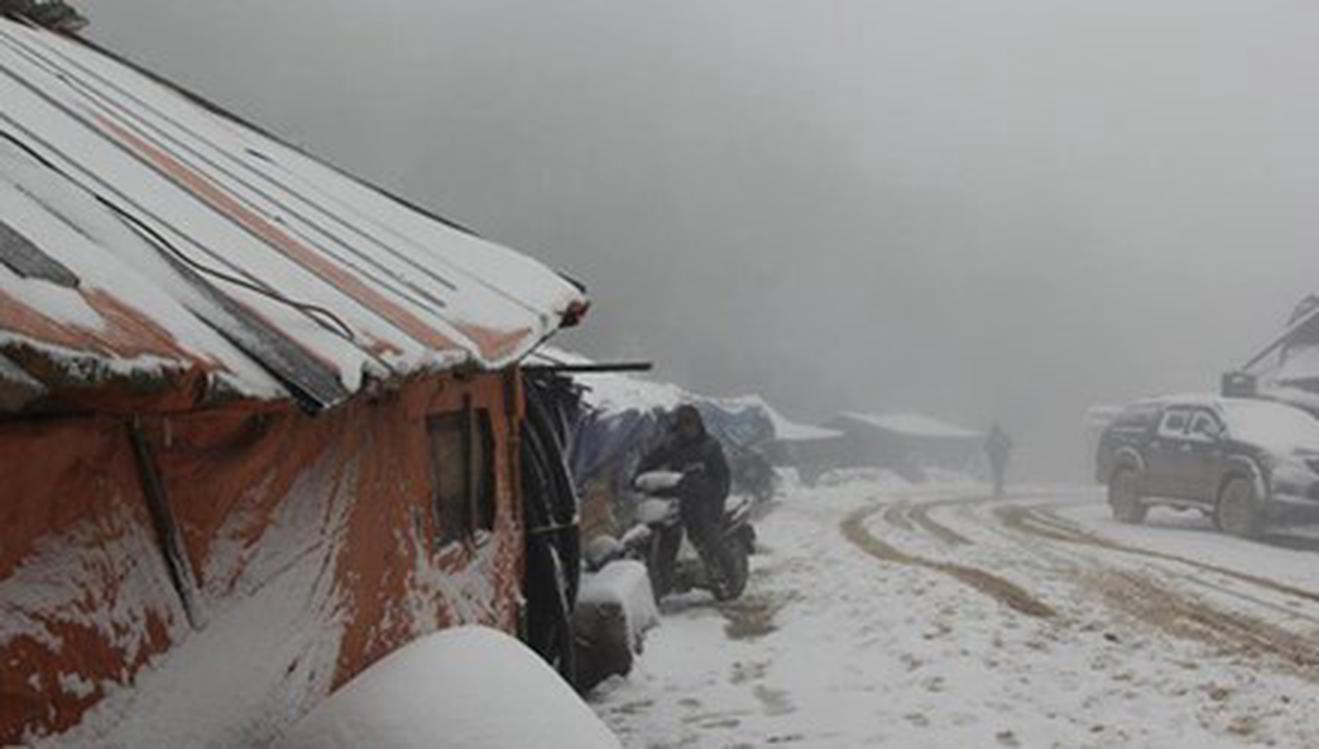 Đợt rét kỷ lục khiến nhiều tình vùng cao Nghệ An xuất hiện tuyết. Ảnh: Băng Trần.