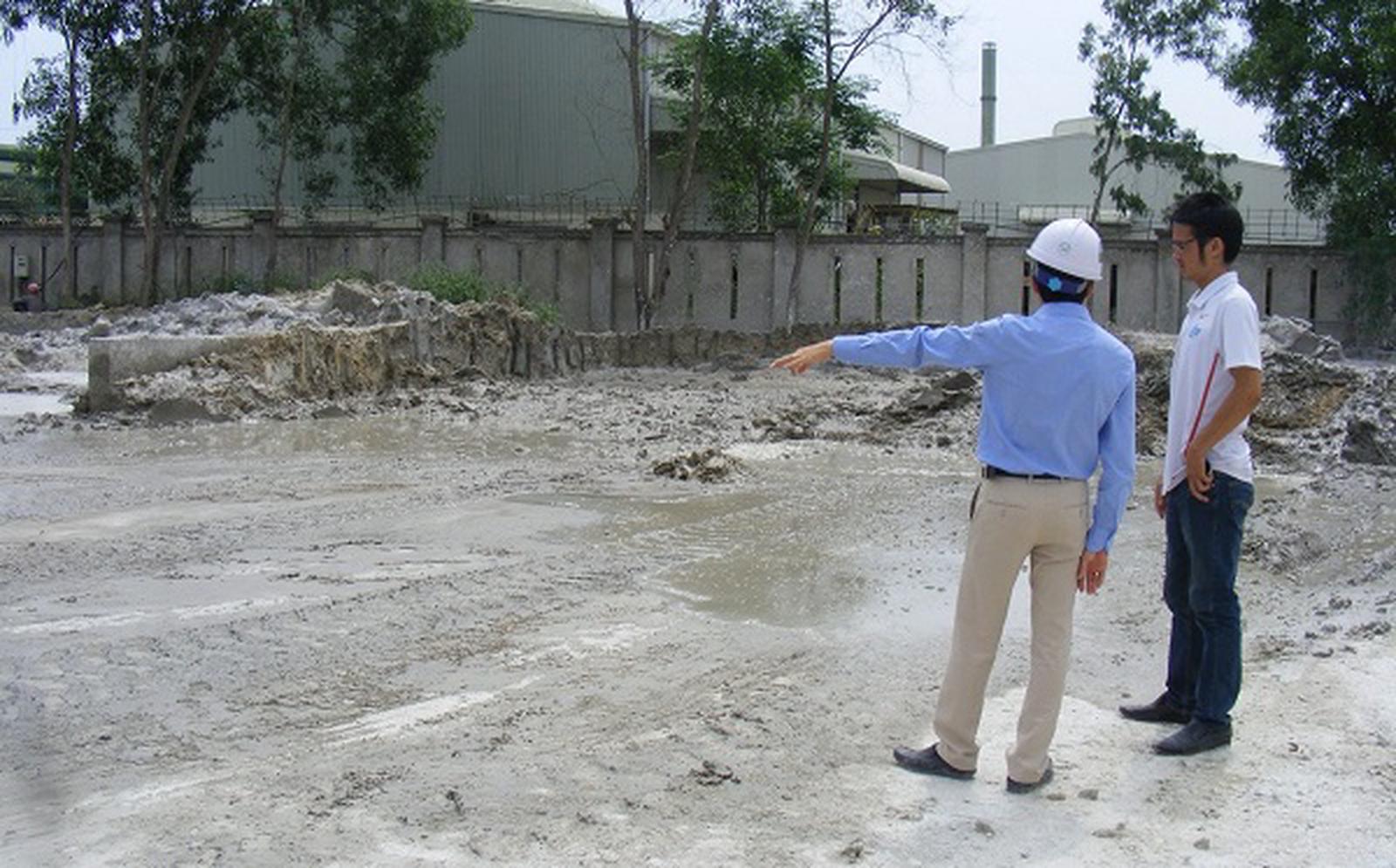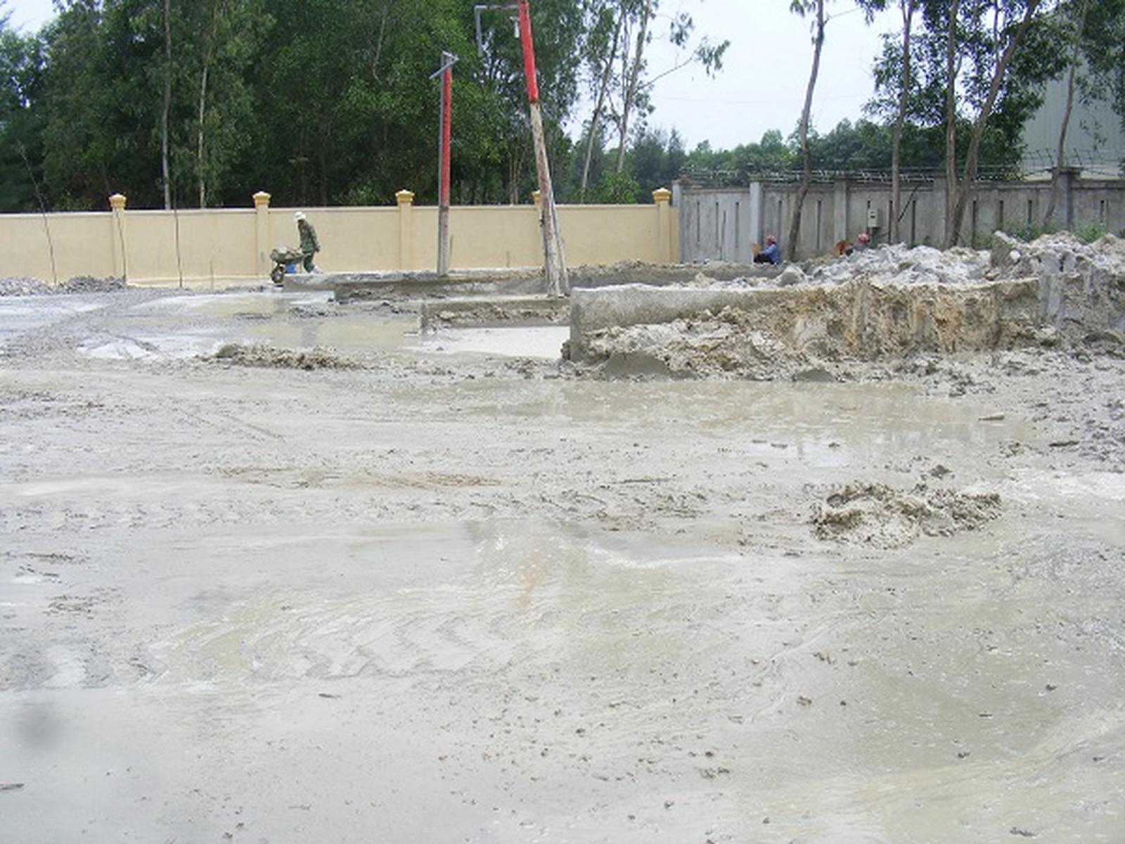 Khuôn viên nhà máy nhếch nhác toàn chất thái từ bê tông tươi. Ảnh: Lương Ý