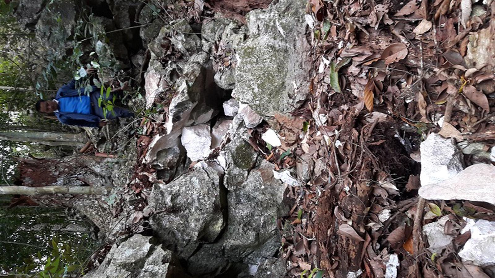 Ngoài những vết nhựa vẫn đang rỉ chảy ra từ gốc cây, một điều quan trọng cho nhất do cây có đường kính lớn hàng mét nên khi bị chặt đổ đã làm vỡ những khối đá tai mèo tại đây. Những mảnh đá vỡ này vẫn còn sáng nguyên thể hiện cây mới bị chặt hạ chứ không phải được chặt từ một năm trước đó.