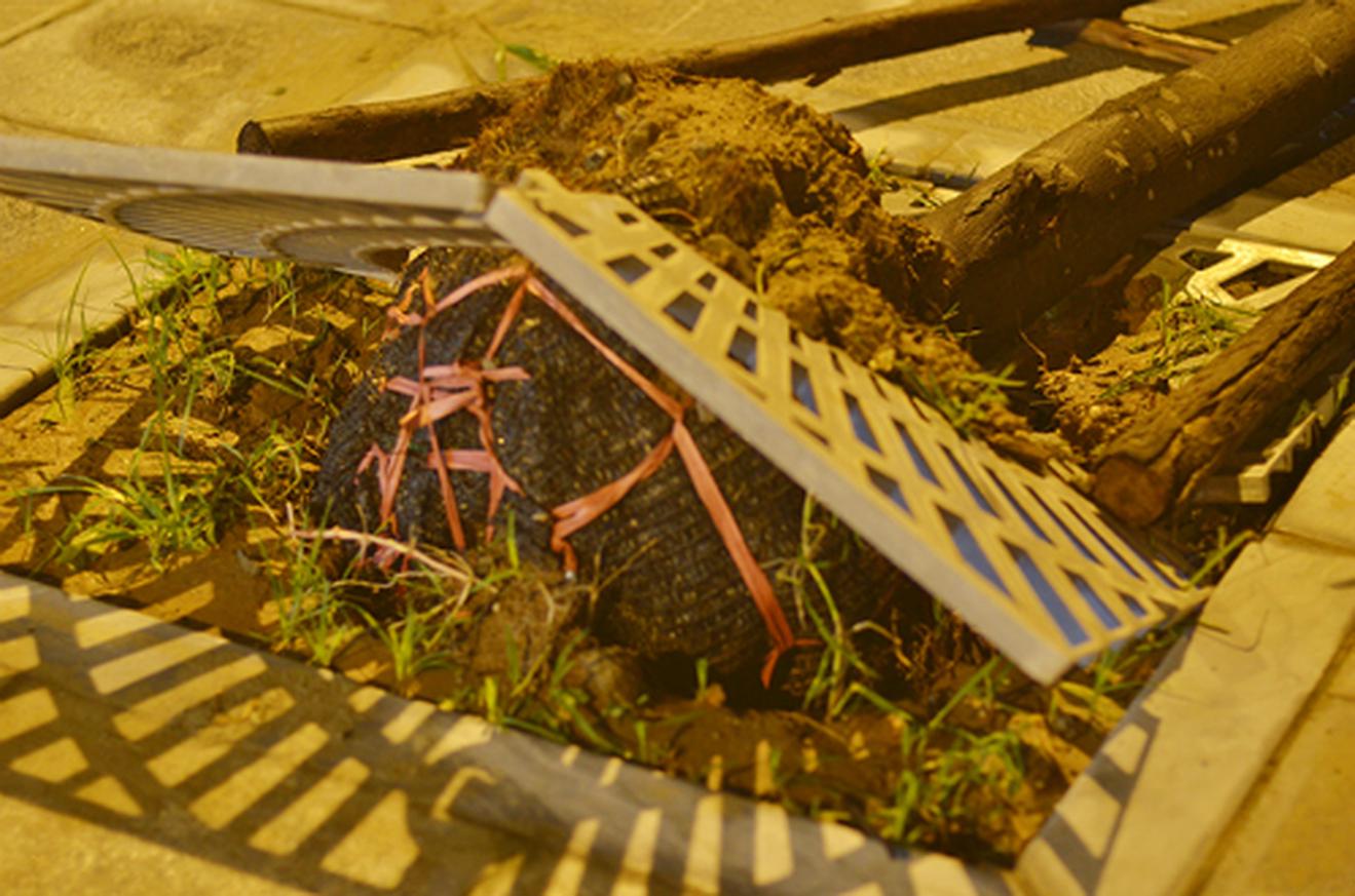 Một số cây trồng trên đường Nguyễn Văn Trỗi, Trần Phú (Hà Đông), Dương Đình Nghệ (Cầu Giấy, Hà Nội) bị bật gốc trong bão Marinae lộ nguyên vỏ bọc bằng nhựa, nylon.