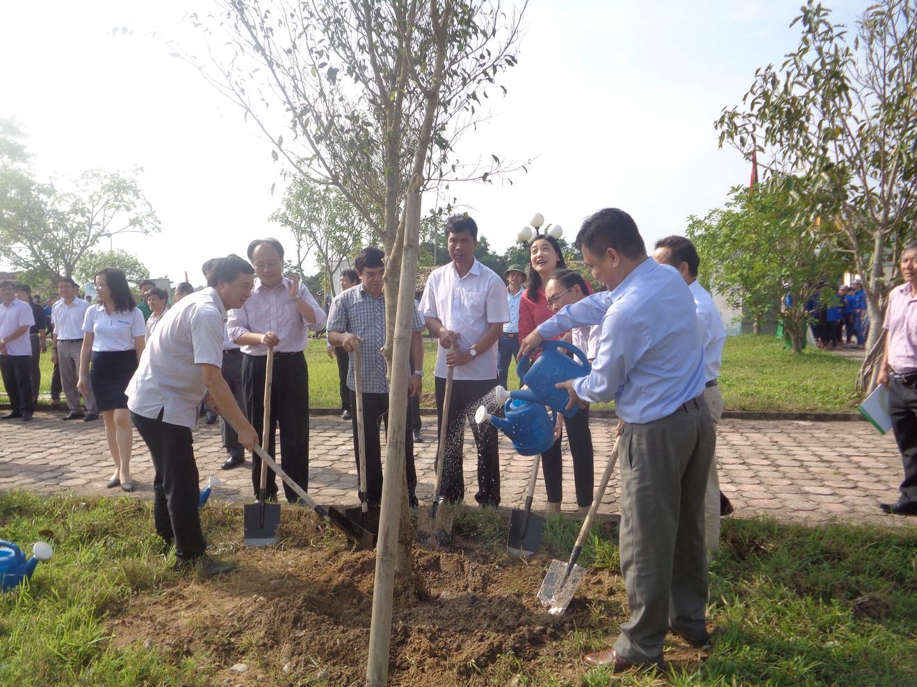 Các đại biểu trồng cây tại Di sản văn hóa thế giới Thành nhà Hồ (Thanh Hóa), trong chương trình “Panasonic vì một Việt Nam xanh” . Ảnh: VT