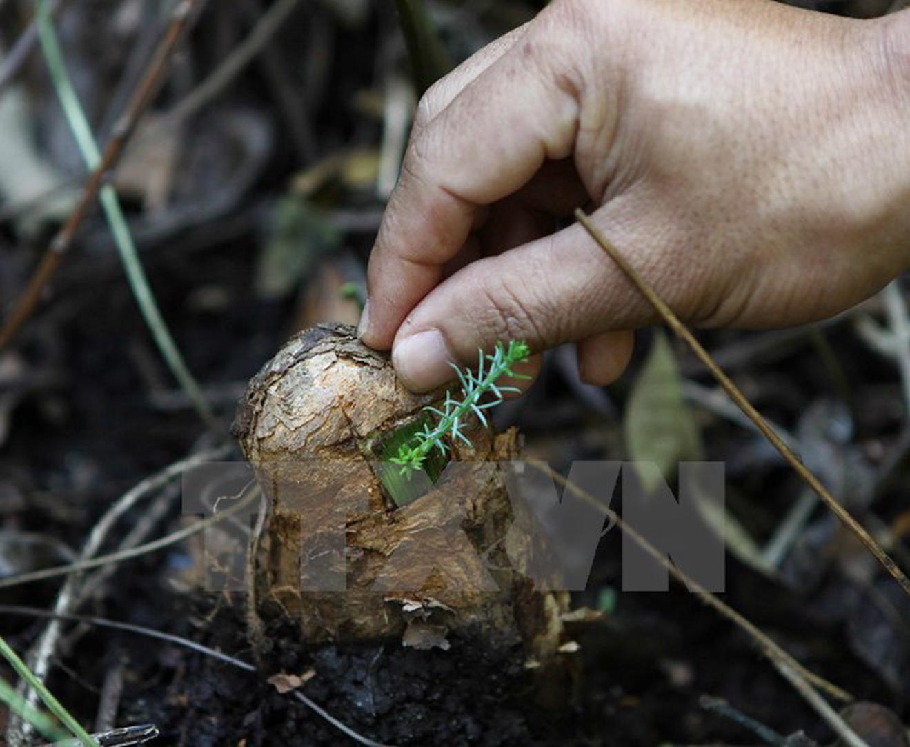 Nhân giống, bảo tồn cây thông nước. (Ảnh: Dương Giang/TTXVN)